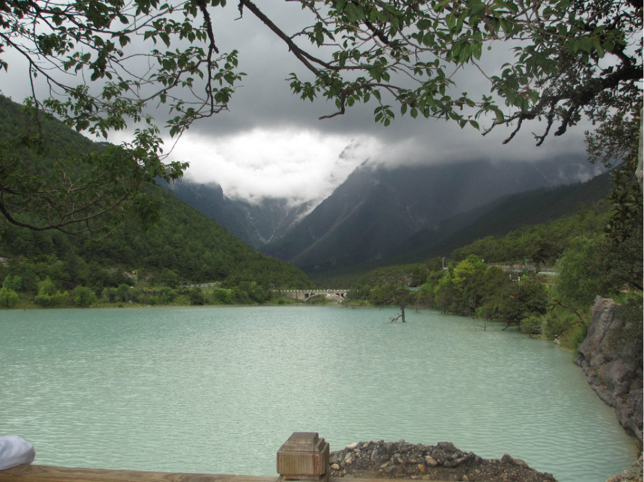 从雪山下来,我们就乘坐电瓶车来到蓝月谷,那儿的湖水超级蓝的,风景很不错。