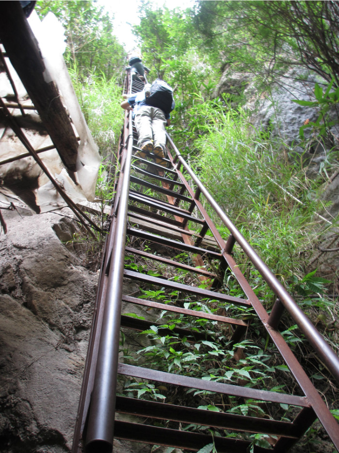 之后有两条路可走,一条是修好的山路,一条是天梯。对于想挑战下的人,自然是要爬天梯啦。虽然天梯接近90°,但是爬上来,个人感觉是还好,只要手抓稳,脚踩稳,不要往下看,是没有什么大问题的。