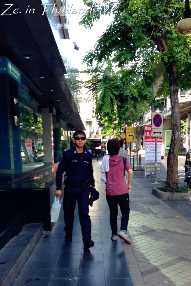 曼谷 的警察都还很nice的说,我们去找警察问路,他们还把凳子让给我们座。自己不知道怎么走最方便,还叫来了附近的小摊摊主。几个人叽里呱啦的研究半天,最终,还是53路公交车。而且只有两三站的样子就到了~我们不知道需不需要付小费,反正我们也没给,谢过之后就愉快的和警察叔叔道了别~~