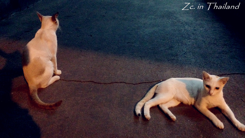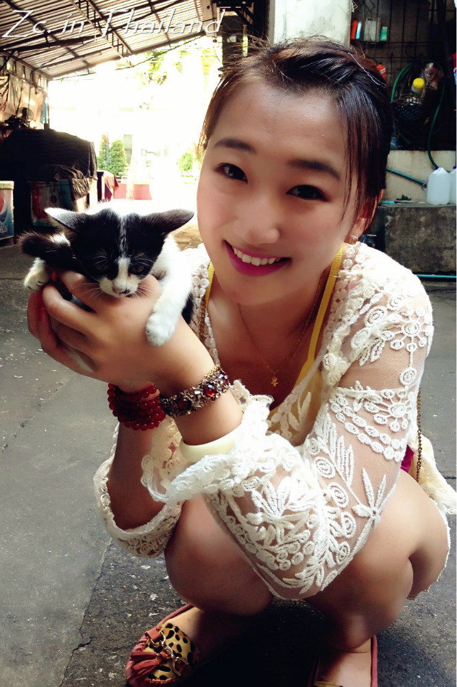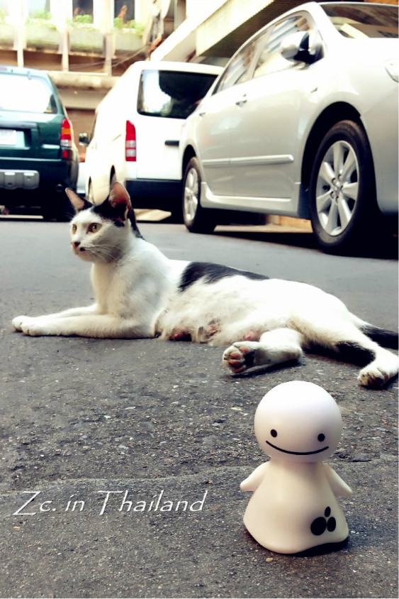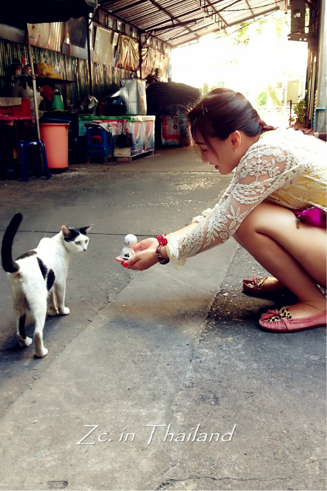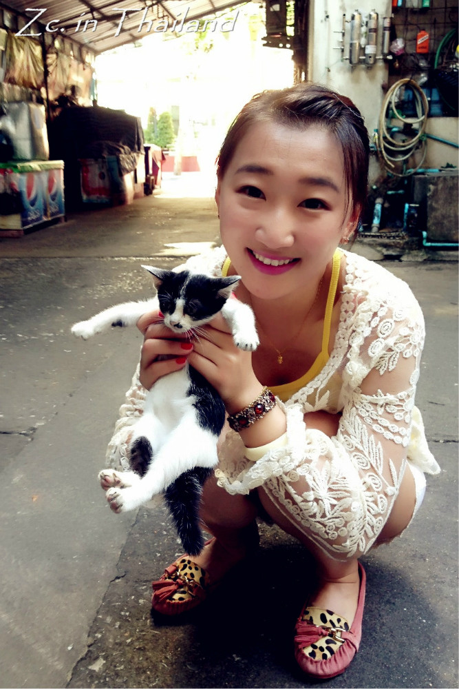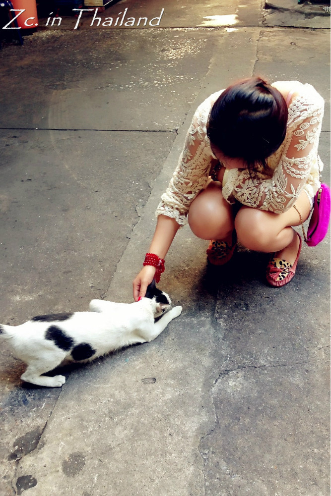 回旅馆的途中遇到了一只超淡定的喵,是位刚生完孩子的妈妈。很亲人,摸摸挠挠怎样都可以。而且很有派头的样子,不管你怎么挑逗,基本不怎么看你哈。和它玩的正高兴呢,不远处突然跑出了一只小喵,原来是它的宝宝哈。一样特别亲人,摸摸就开始呼噜,随便抱~可爱得很!在曼谷 的这几天总能看见在街边随处休息或找食的猫狗,不怕人,也不凶人。当然,也没有人被它们吓到大惊小怪或对他们进行追赶。我无法去评论那些不喜欢动物的人,我只想说,可以不喜欢,但请不要去伤害。恶狗伤人事件发生的根本错误在于养狗人,而并不在于狗本身。所以,也请不要抱着一时兴起的心态去养小动物,一旦饲养就要终身负责。还有一句就是,领养代替购买。