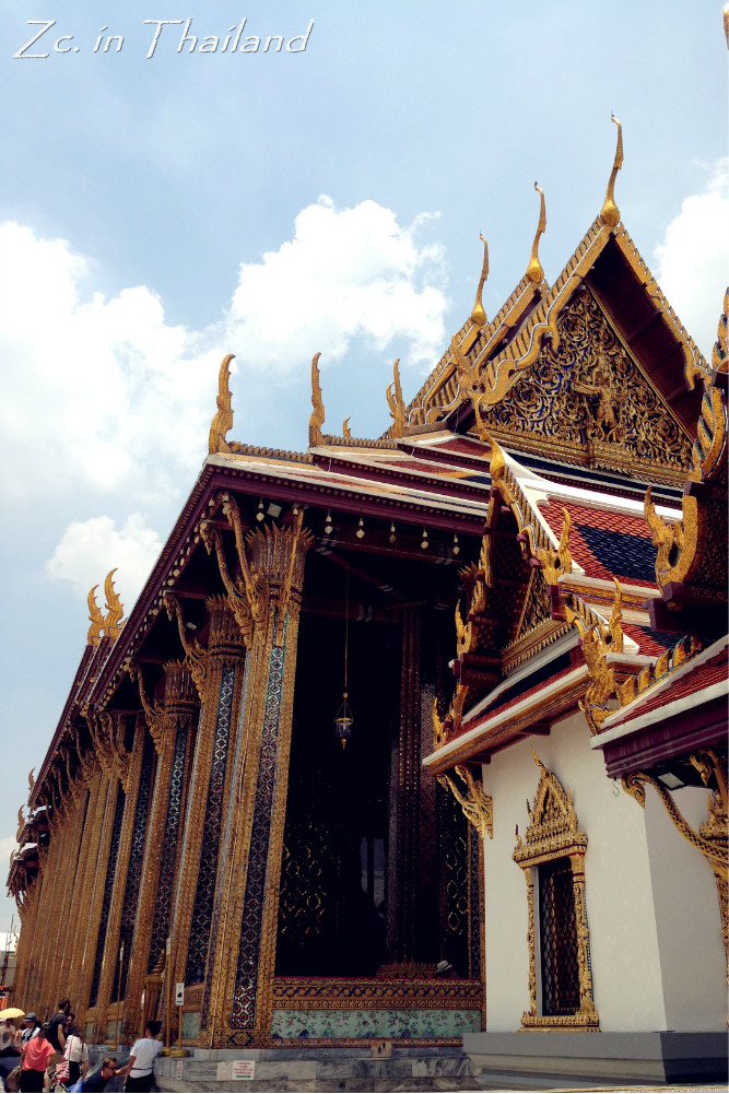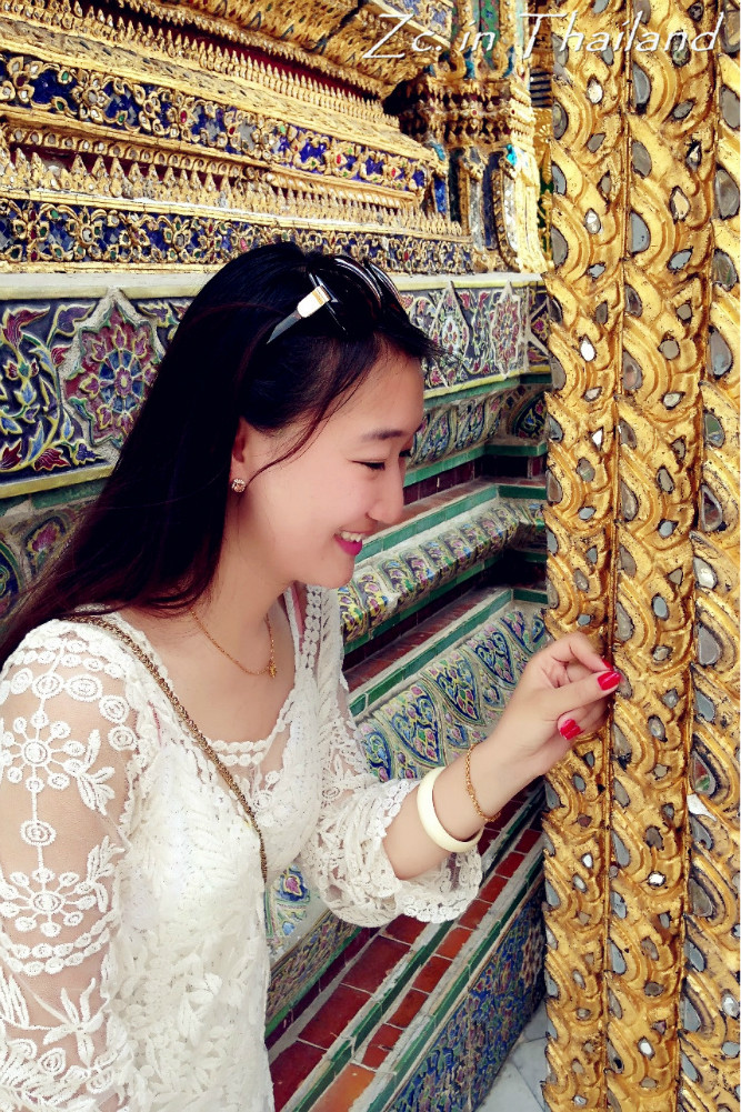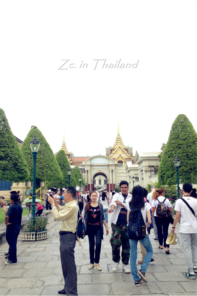 到站后,通过路边的地图顺利找到了大皇宫 的正门。那人多的,不比咱天安门广场上的人少~门口有执勤的警察,游客都跑去和他照相。我在旁边拍他时,他还向我招手,意思“妹子过来和我合照吧……”哈哈~