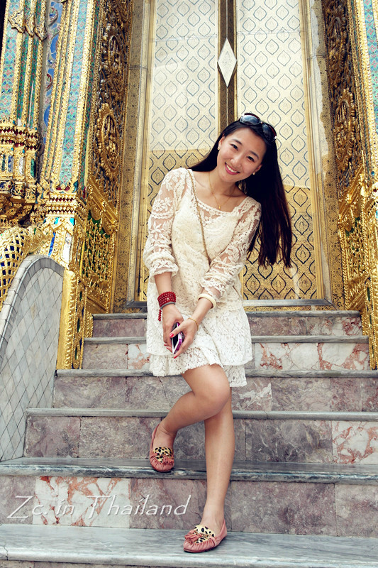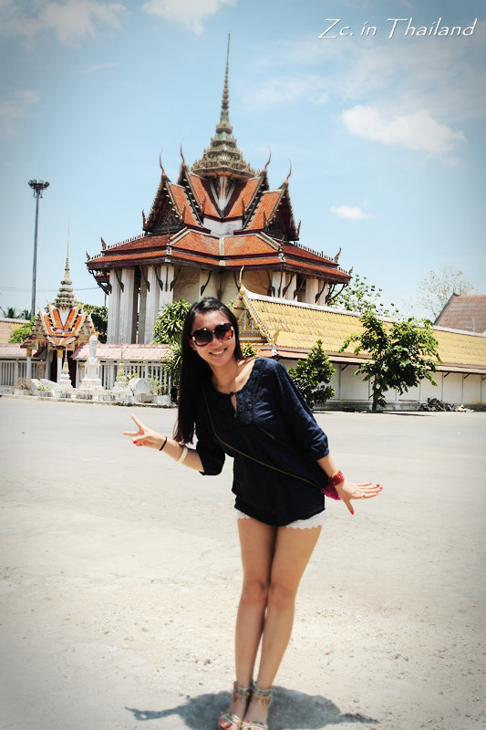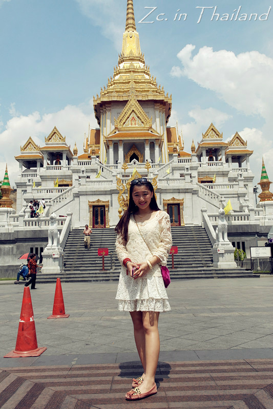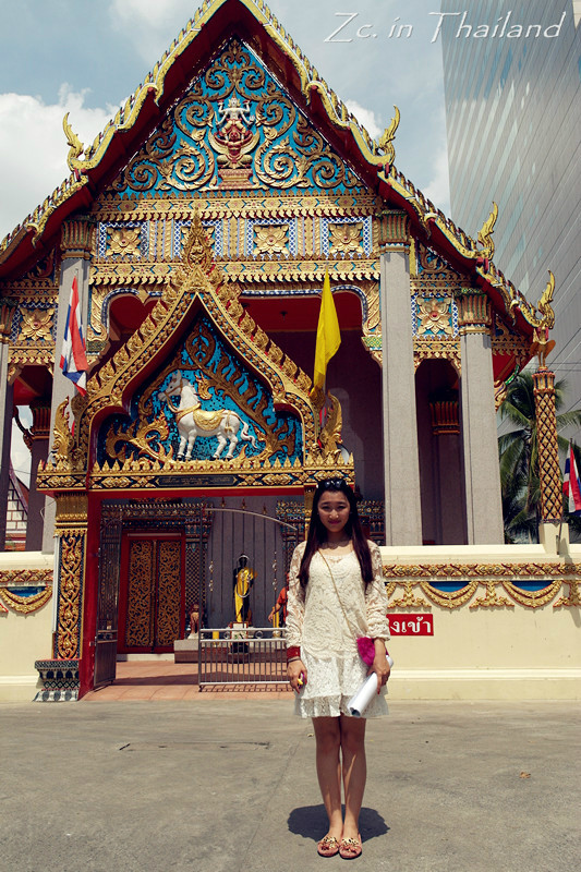 走出这个坑爹的胡同后我们只想去大皇宫 ,于是决定打车。结果,出租车不是听不懂就是不去。后来找了以为老师傅,给他看了图片,人说ok~结果拉着我们兜了个圈,到了一个很小很小的景点~又是40B~我们三只无奈的照了几张相,然后在骄阳下开始犯晕……后来才知道这个地方叫做金佛寺 ……好吧,好歹也算是个景点……