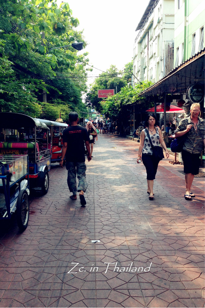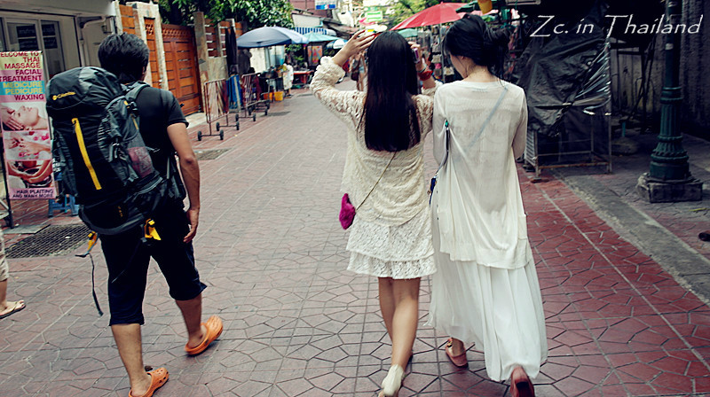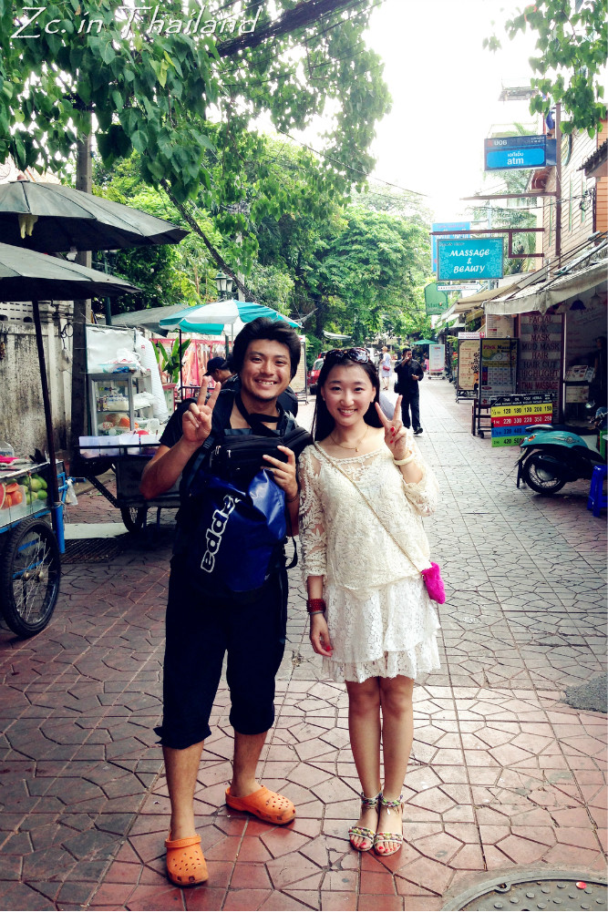 53路公交车真是一辆神奇的公交车~人不多~还有座~最重要的是你会在这趟车上遇到各种各样的游客。比如 我们就遇到了一个日本 背包客,用蹩脚的英语告诉我们他也去考山路 ,可以一起同行。小伙子典型的背包客形象,蓬头垢面,甚至有点衣衫褴褛,背着硕大硕大的双肩背。刚刚大学毕业,毕业的几年旅行就选择这样的背包旅行。先去了吉隆坡 “流浪”了两个星期,又坐火车的硬座到了曼谷 。问他你想去哪玩?不知道。住哪?不知道。什么时候走,不知道。这就是所谓的随遇而安吧。我教他用中文说“背包客”,他也学的有模有样~很可爱的说~我们买了水果分他一些,他都会一直鞠躬着感谢。我们一起从结尾逛到了头,合了张影就挥手告了别~后来才想,应该留一下联系方式。多一个国际友人还是挺好的。我知道肯定会有人说小日本 这样那样的话。但我想说,那些对普通的日本 老百姓不屑一顾甚至侮辱谩骂的人也收不回钓鱼岛,这也不算是爱国的方式之一。友善不分国界,当别人对你微笑时,你就要还以别人温暖。