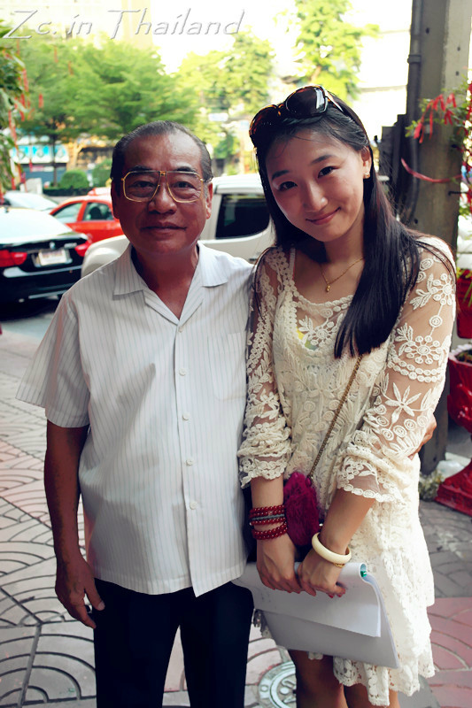 小插曲:这个大爷,怎么说呢,还是比较可爱的……我们走的晕头转向的时候,周边也没什么人。刚好他在他的店门口转悠~我就上去搭话~正用英语叨叨着,大爷张口来了句,说中文就可以了……我们那个汗啊……大爷说他是华人,但是已经是他们家第六代在泰国 生活的人了。不过汉语还是会说的~指完路后,还给了我们名片,让我们有机会招呼他的生意……但其实,我都不知道他的店到底是卖什么的,似乎是五金相关吧……然后捏,盆仔想,遇到华人好呀,那合影一张吧。然后大爷就搂!着!我!合了影,再然后叫来我哥合影,再叫来我嫂子合影。但一直保持搂着我的姿势~~~