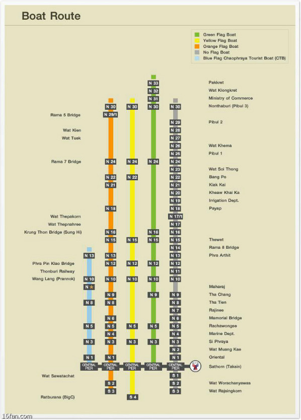 A、曼谷 的湄南河上交通使用Boat,是当地人的主要交通工具。一共有5种船可以选择(4种有颜色旗子,一种没有旗帜),路线基本都差不多,从 Wat Rajsingkorn到Pibul。在SathornTaksin (C6站)可以转SkyTrain天铁(S6)。运营时间基本是上下班时间,6:00—9:00 a.m. ,3:00—6:00 p.m.,(Tourist Boat游客船时间是9:30a.m.—3:30p.m.) ,票价便宜,Local Line 10—15B, Tourist Boat 40B。