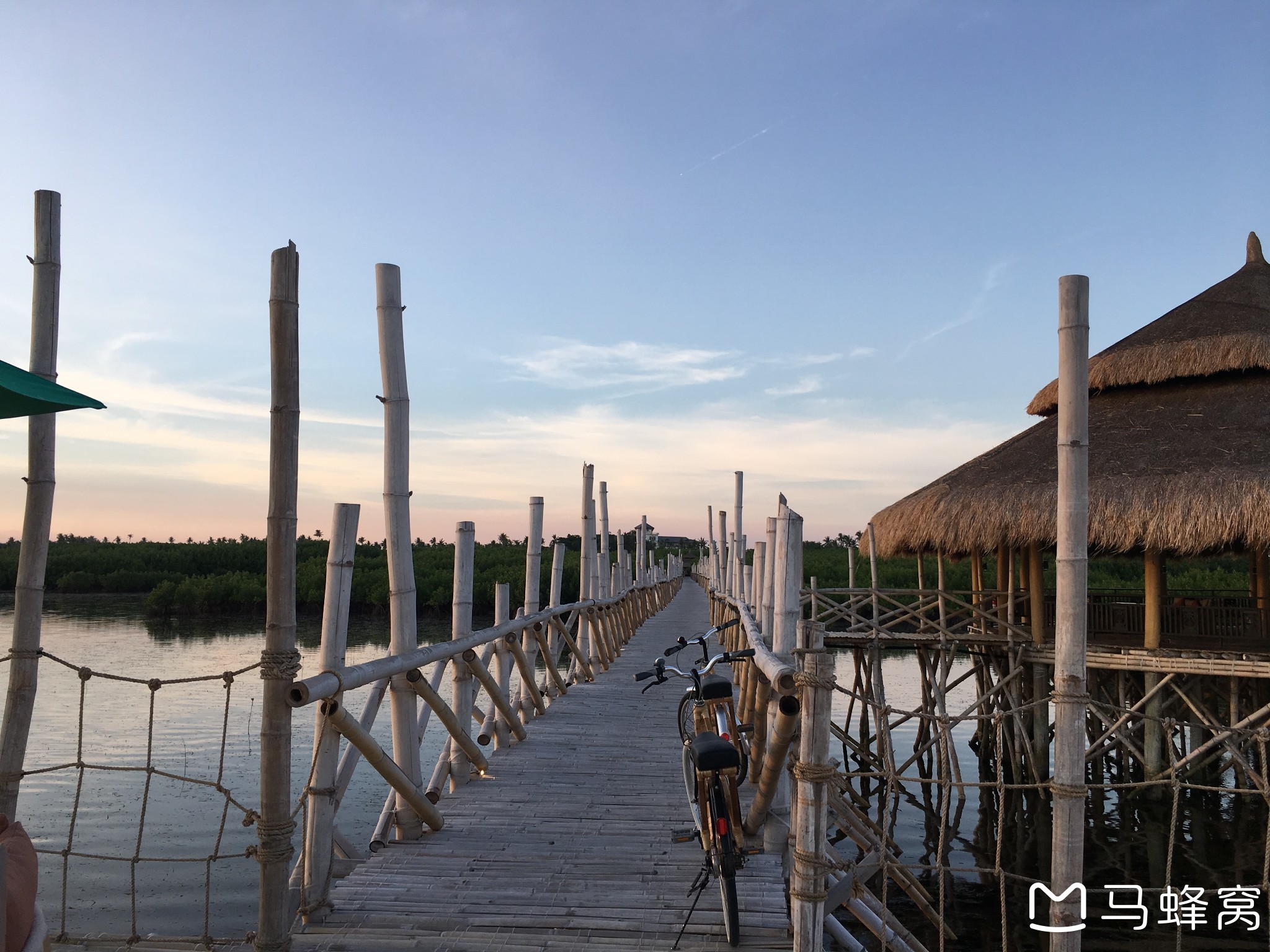再说说特色,酒店坐落在一片红树林中,以bamboo为主题设计,彰显自然简约风,有一个大概2KM的栈桥,用竹子建在红树林上,超级美!可以散步也可以骑自行车欣赏风景,栈桥尽头有一个露台,可以远眺对岸的处女岛,欣赏海船归家,太阳东升西落,夕阳美到令人窒息,晚上躺在那里还可以看到满天星空,这么安静美好,就是我要的度假的样子。要说唯一的不足,就是没有海滩。