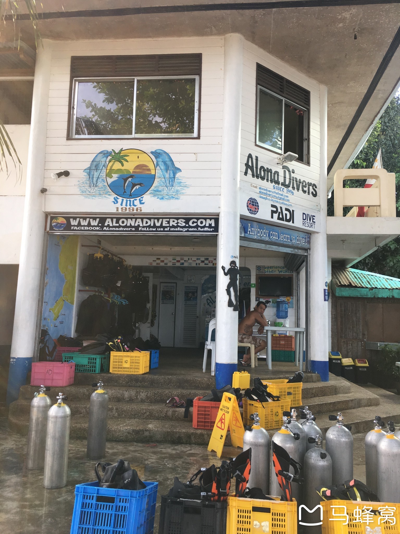 这是间老店了,我们在的那两天还看到境外摄影团队来这间店拍水下成片。后来在Tripadviser上一查,还是排名第四的潜店。不吹不贬,只想认真评价一下,我没有在这间店考证,所以不知道他的教练水平怎么样;单说潜导,还是很细致的,做review时从装装备开始基本把OW的内容重头过了一遍,然后每次下潜前都会先做一个briefing,告诉你待会儿下去的步骤,去哪里,大概去到多少米,什么水下情况,等等,有一种只要跟着他就很安心的感觉。当然,这些只是个人感受,也有可能是我没见识过更好的潜店,这些还是需要自己去感受吧。