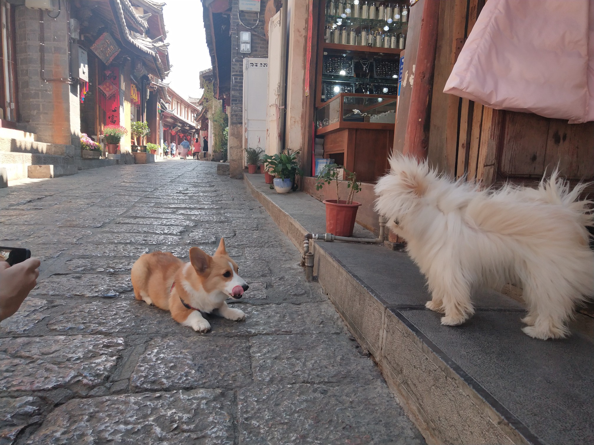 偶遇两只欢快的狗子,小短腿你追我赶的,在 丽江 好像狗子看起来都特别快乐。