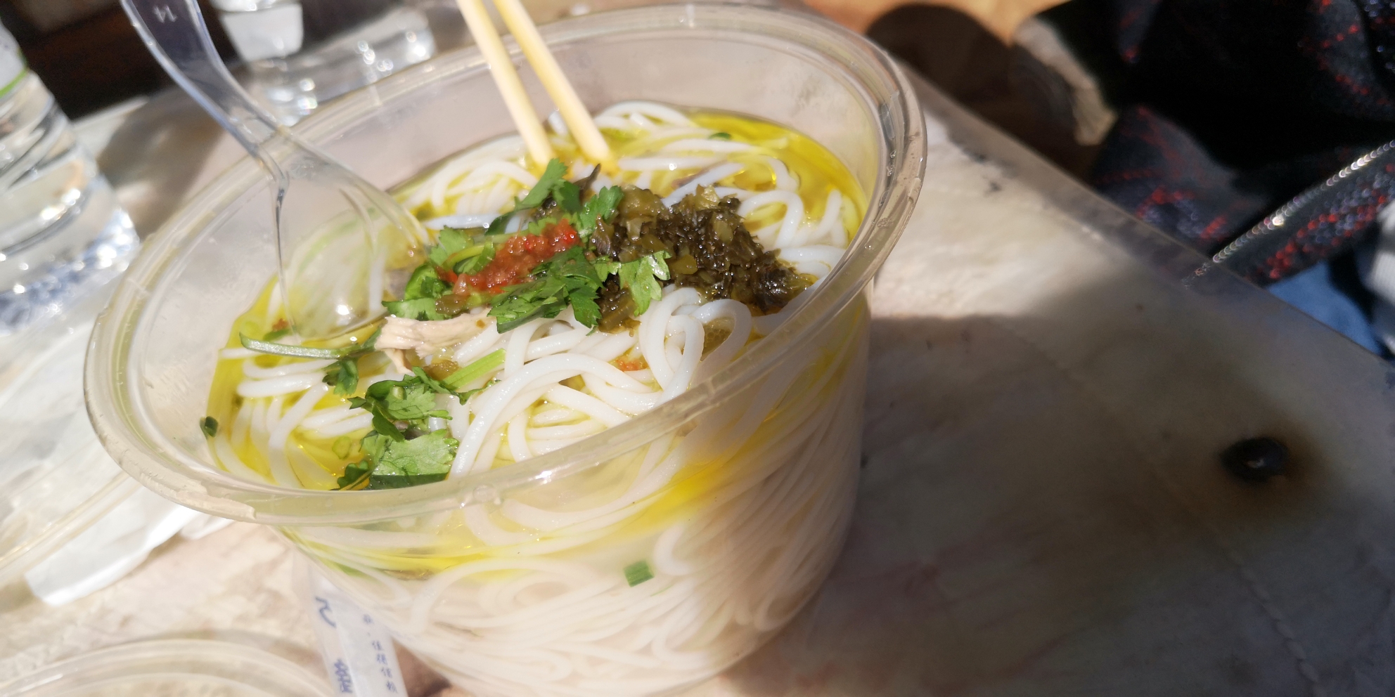入住的客栈在 狮子 山附近,地处比较高,风景较好,也较清净,但是要把行李箱拉上拉下还是有够累的,走到客栈大约需要十分钟时间。在客栈老板的推荐下尝了在 云南 的第一顿——土鸡米线。