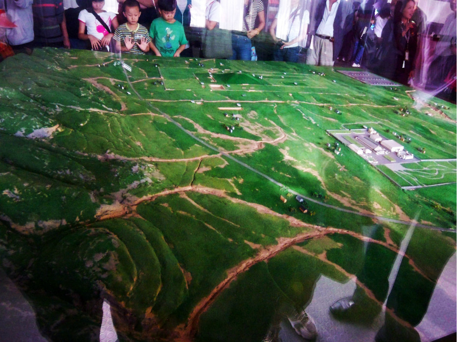 秦始皇陵周边地形沙盘,皇陵身后是骊山,骊山左右有蓝田 玉与金矿,富贵不愁