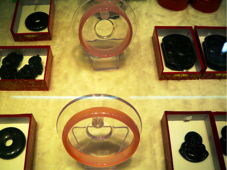 馆内展示和销售的蓝田 玉手镯, 中国 四大名 玉之一——蓝田 玉制品