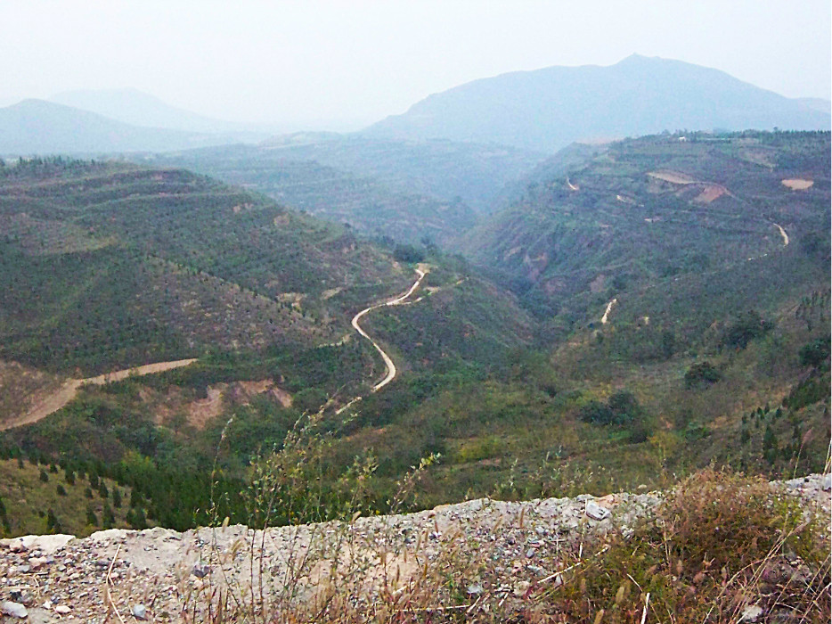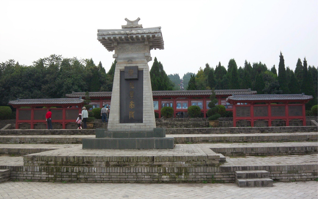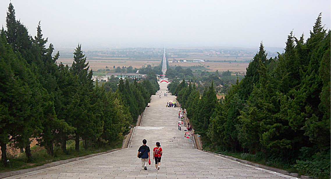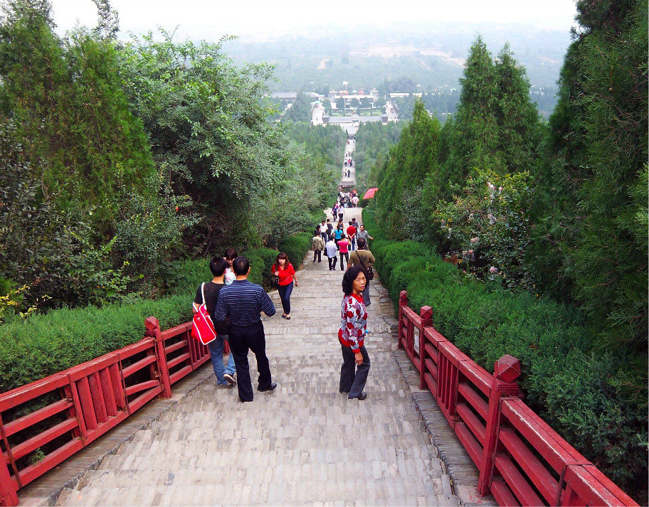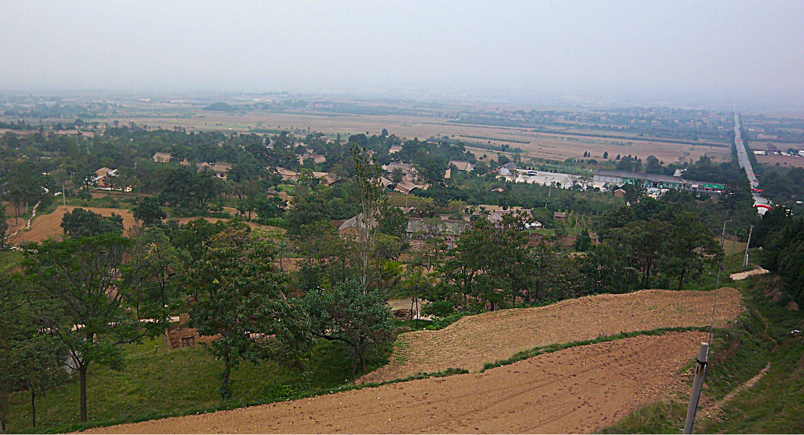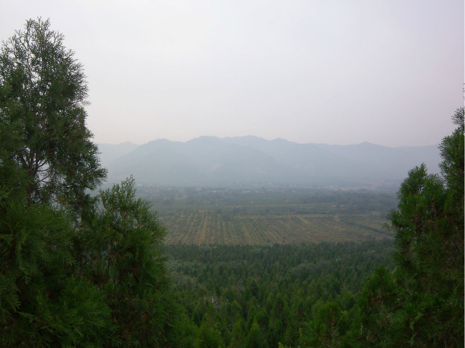 从皇陵向下俯瞰。皇陵之土原本是炒熟之土覆盖而成不生草木,解放后培植草木以保护表面