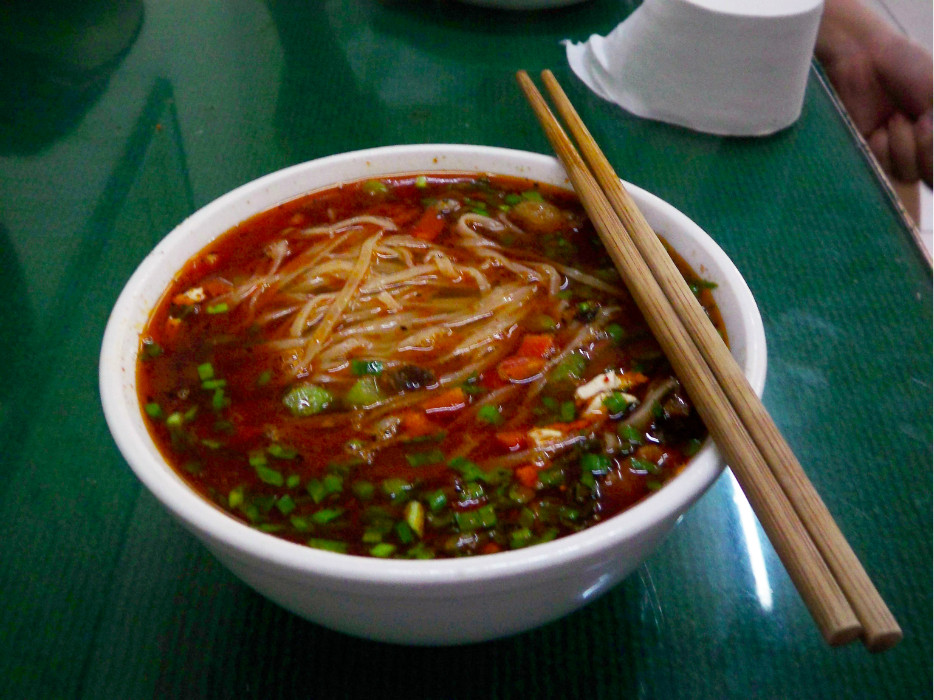 逛了一上午,下午回城吃碗陕西 名吃——臊子面,面条劲道,汤味浓郁,很好吃