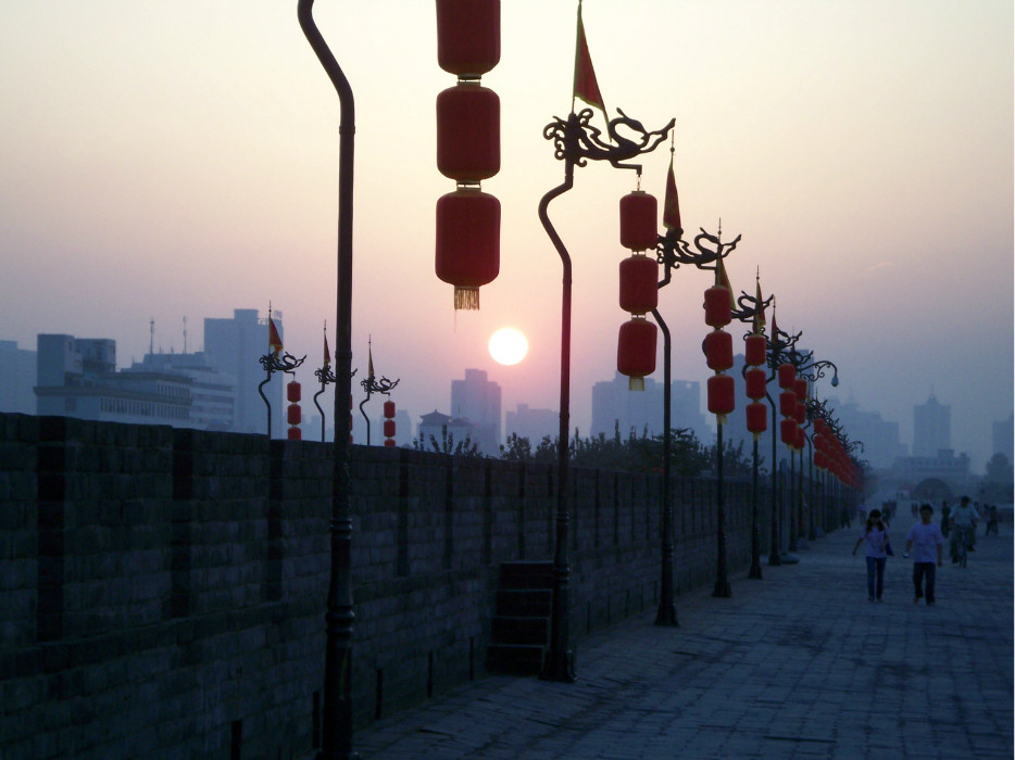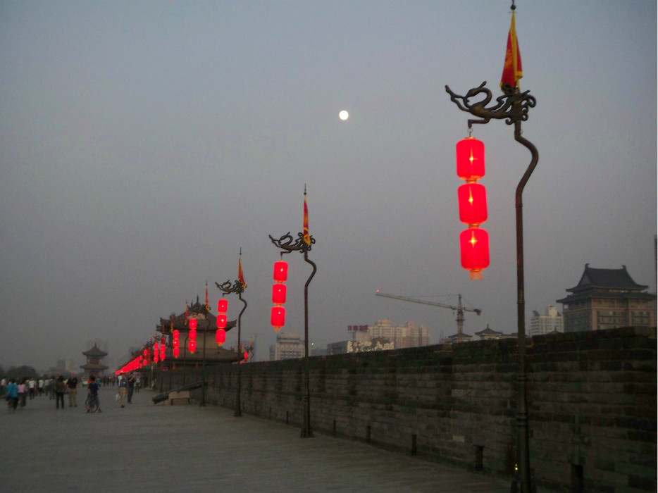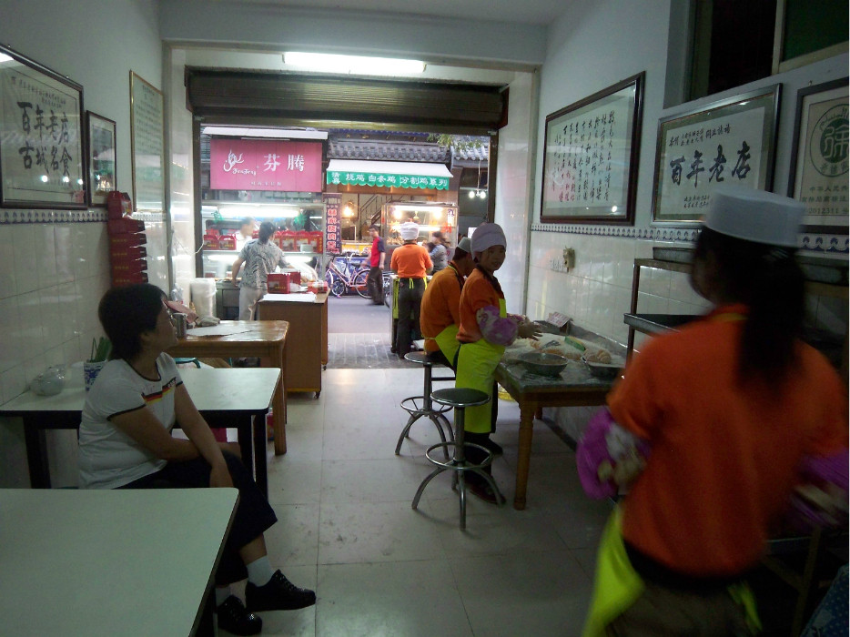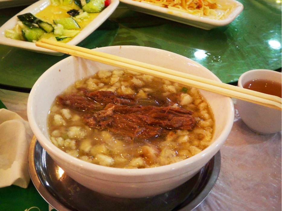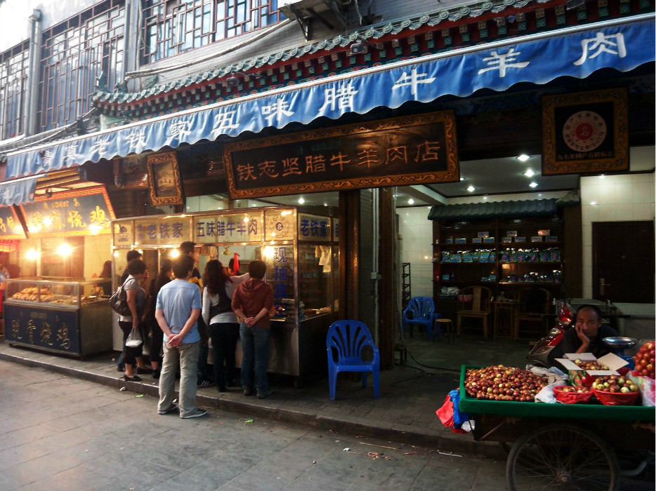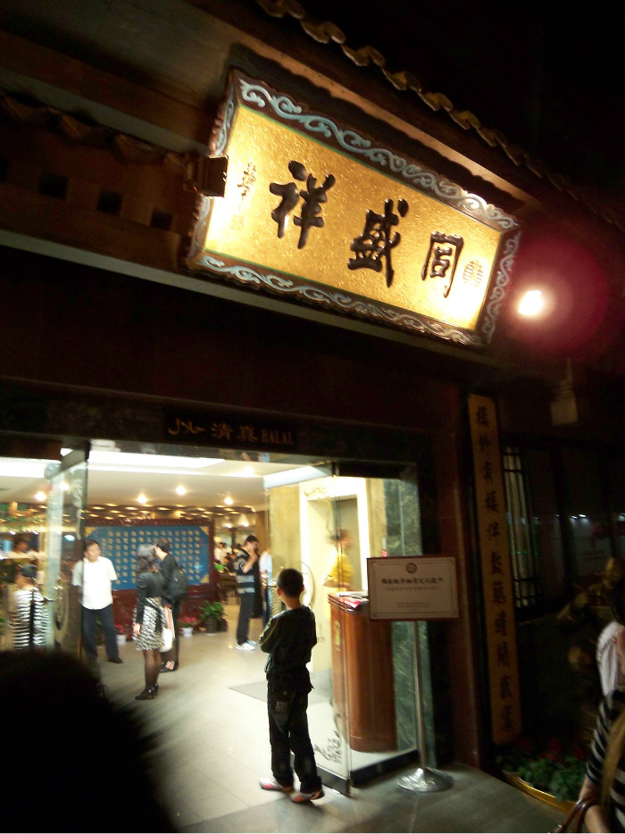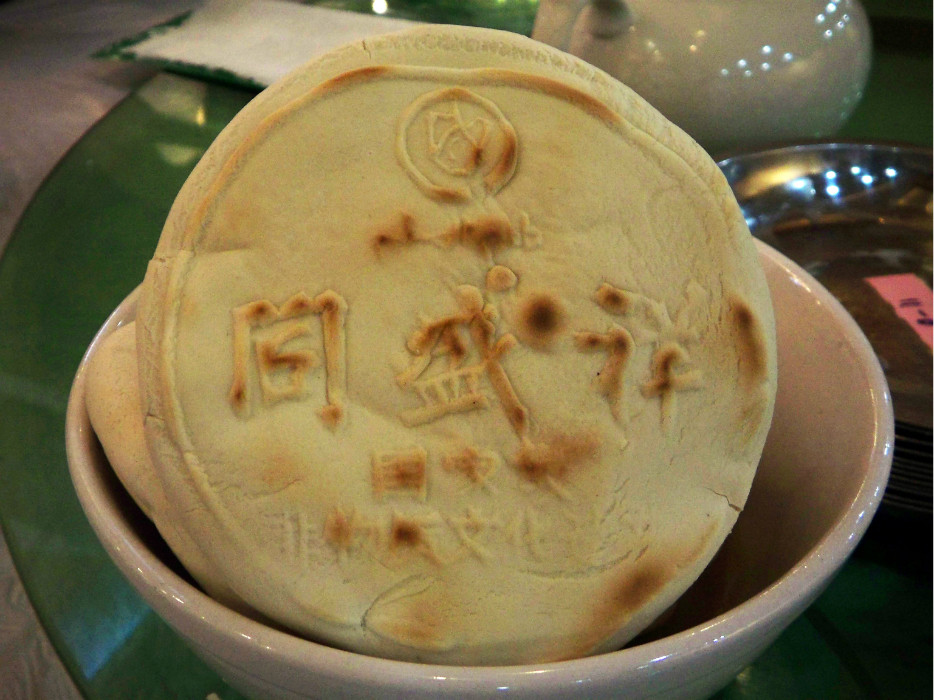 在城墙上留恋忘返!但肚子却抗议了,去最著名的羊肉泡馍店——同盛祥 吧!连馍上都有标记!