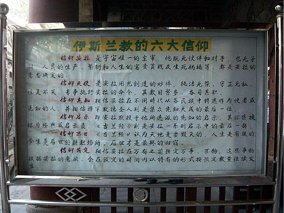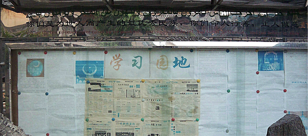 回族兄弟们还很爱学习的,仔细看看橱窗上方的黑字写的什么?