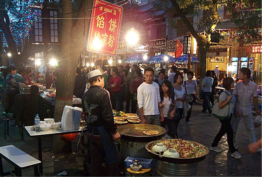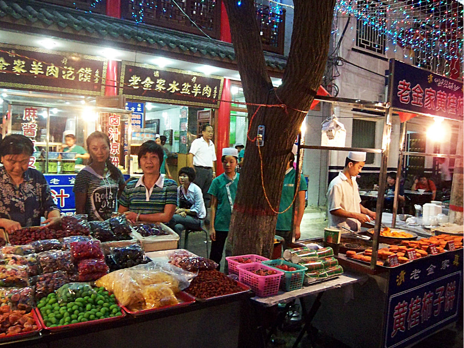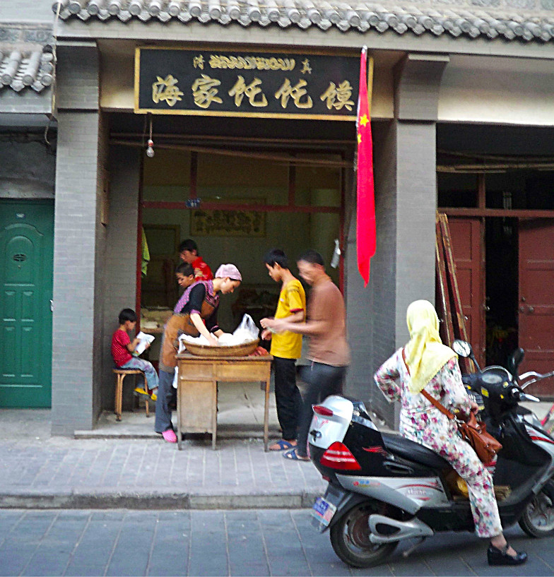 出了清真寺走入回民街,到处是特色店铺。刚才还有回族人的结婚车队,前面是加长林肯 ,车队从狭窄热闹的街道穿过,可惜我忘了拍几张了了