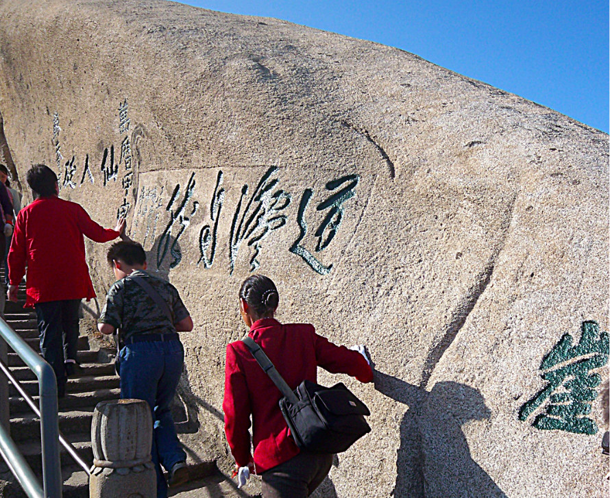 经过千百年文人骚客的“到此一游”,碑上已有了些“文字”,有字碑已变成了无字碑