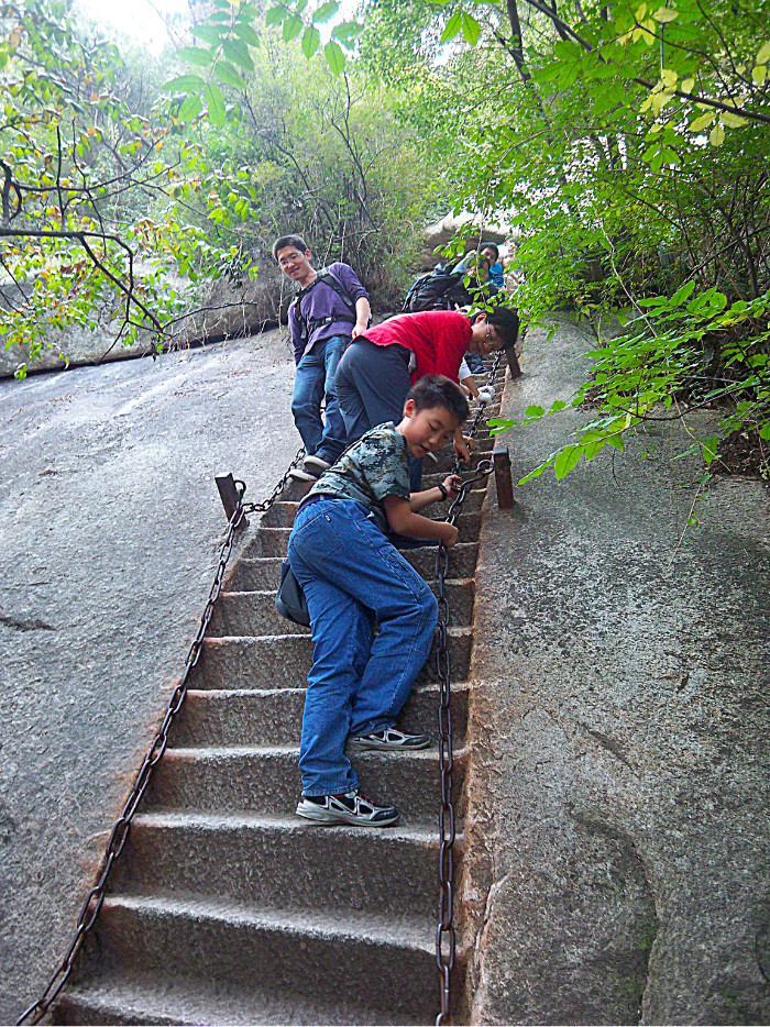 乘坐缆车上山,老胳膊老腿了尽量别逞能爬山,对膝关节损伤很大的。