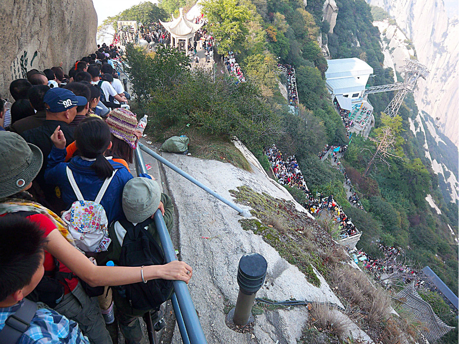 下山时赶上下山人流,排队坐缆车的队伍超长,