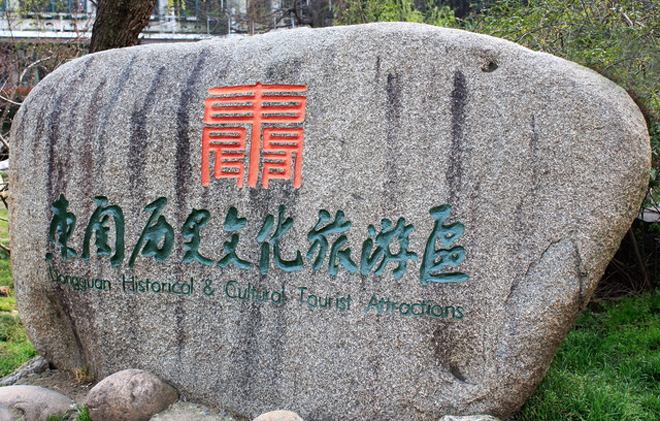 “东关”标志很有设计感,“东“和“关”组合得很艺术。