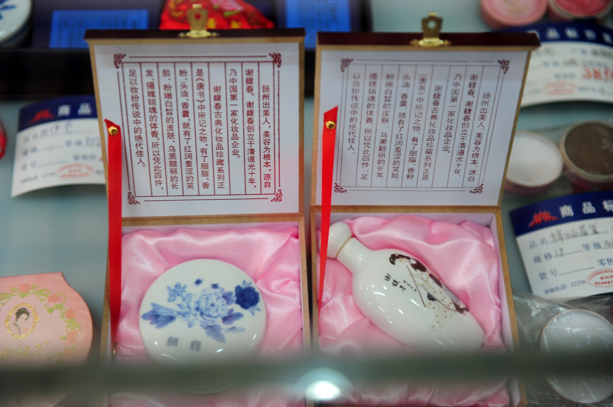 谢馥春香粉店,1830年开业。如今,谢馥春香粉名扬海外,在扬州有很多家分店。