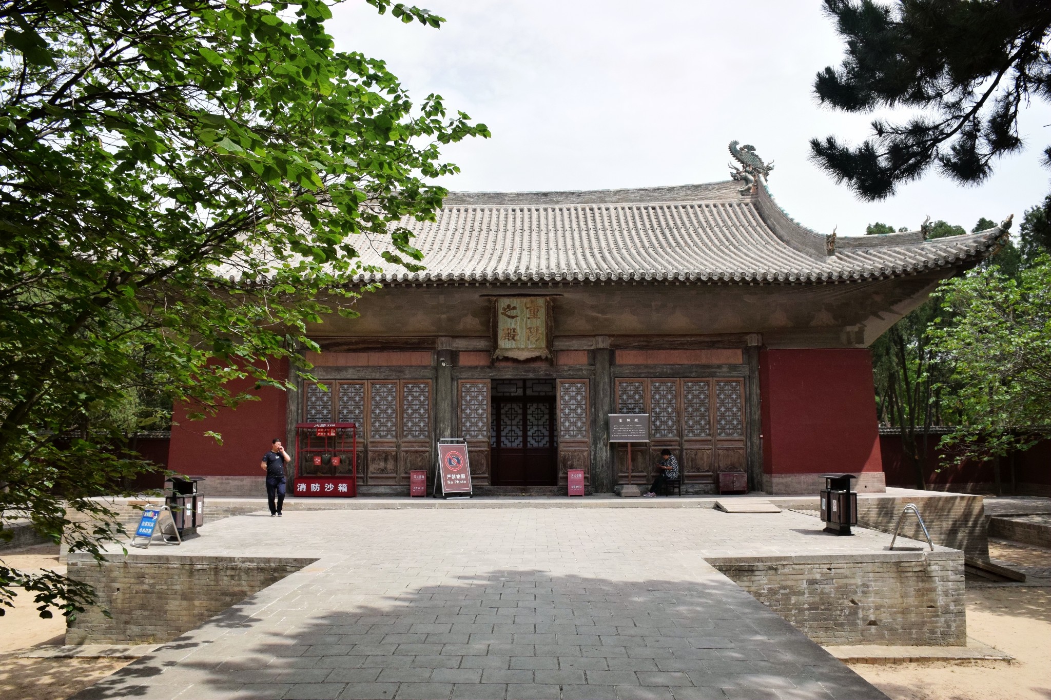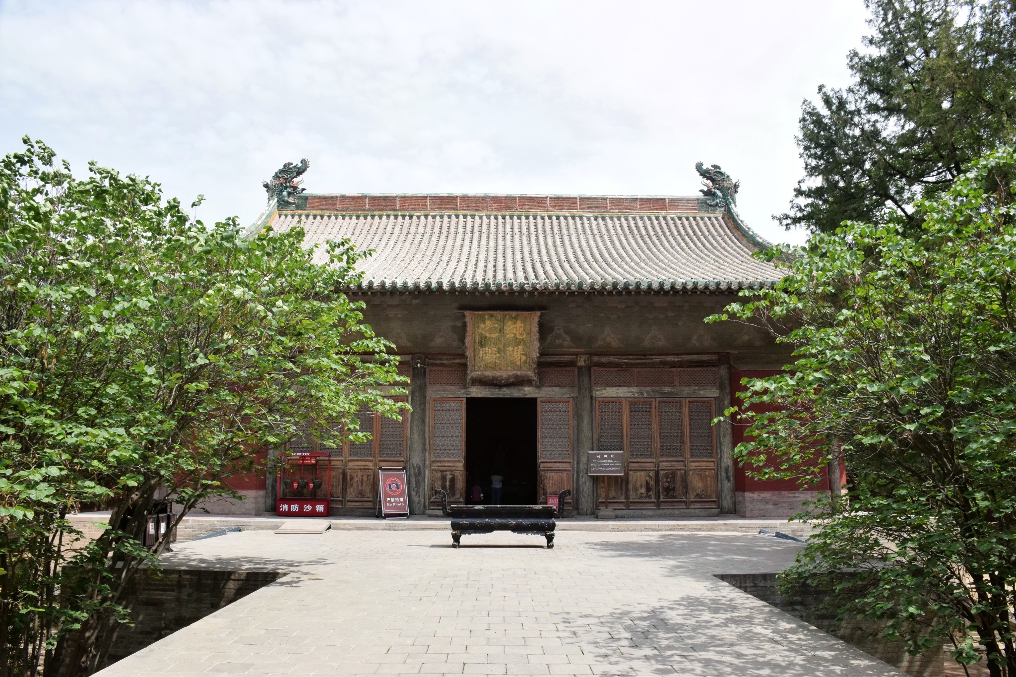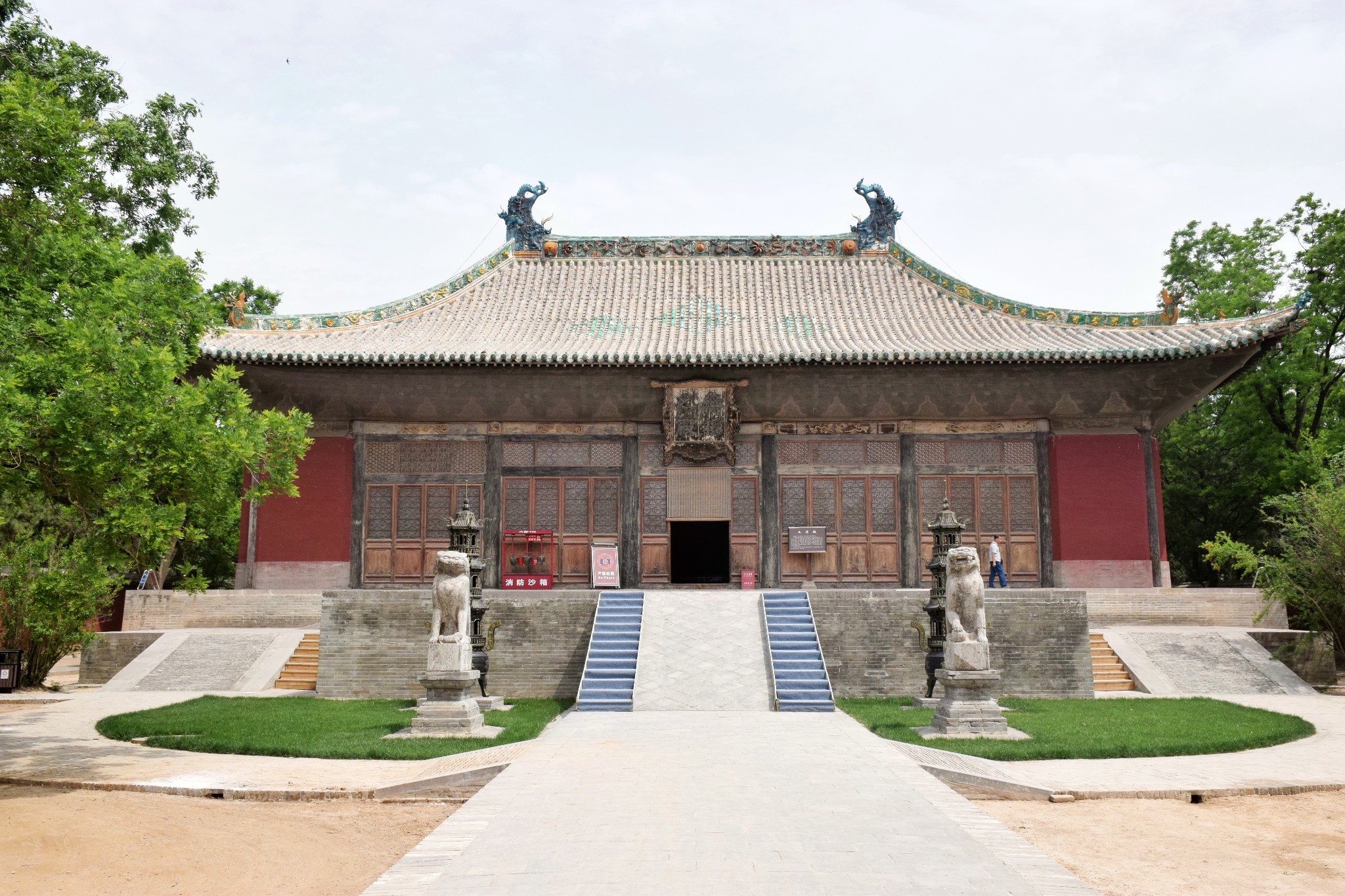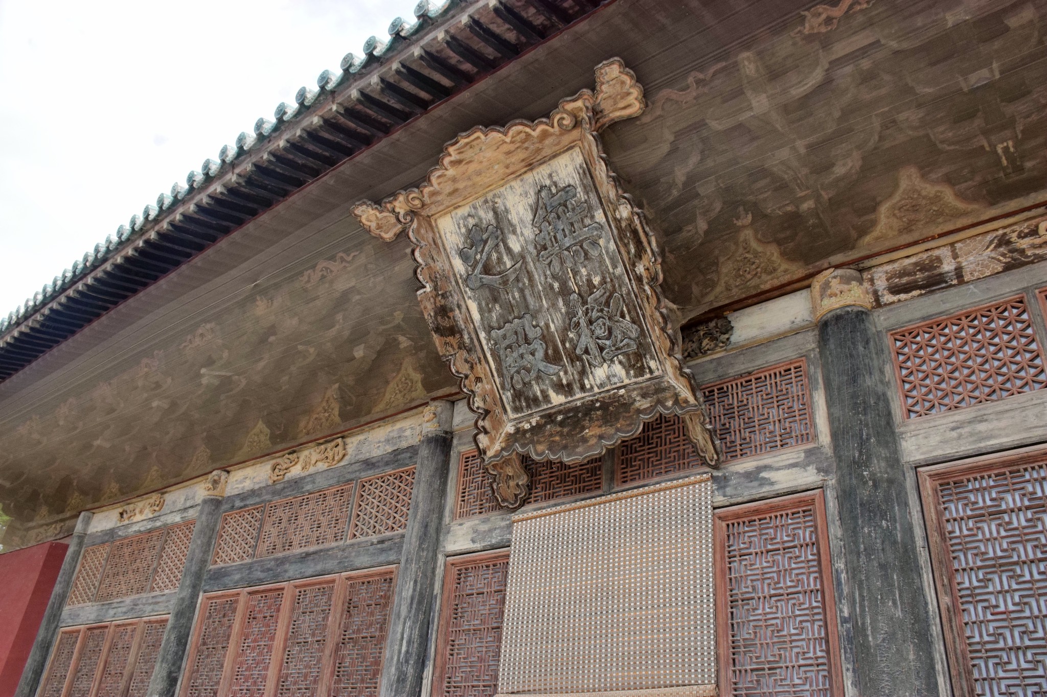 龙虎殿,又称无极门,单檐庑殿顶,为元代宫门。殿内原供奉道教青龙、白虎两星君泥塑(现泥塑已毁),故称龙虎殿。殿内现绘有80平米元代壁画,画面虽有残损,但唐宋工笔人物画的风格仍旧鲜明。