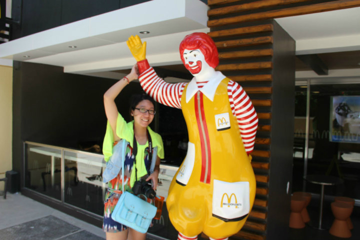 跟麦当劳叔叔留个影。