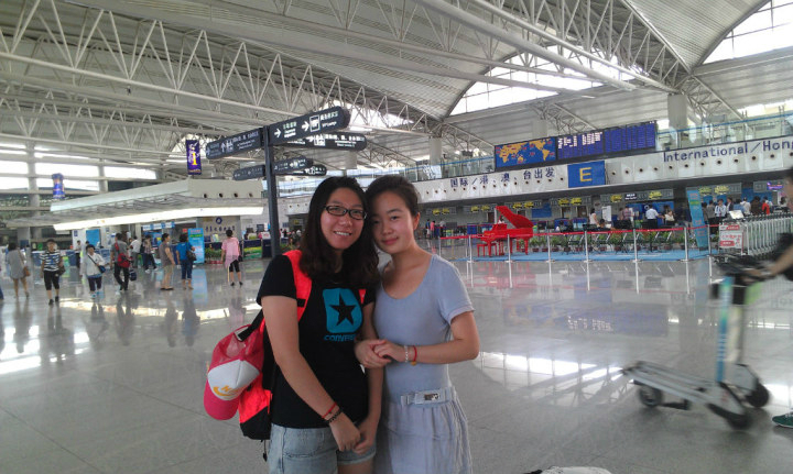 青岛流亭机场集合,我跟我的小伙伴留念。。。PS:还没去就呢么黑了