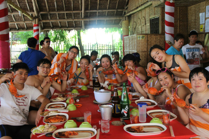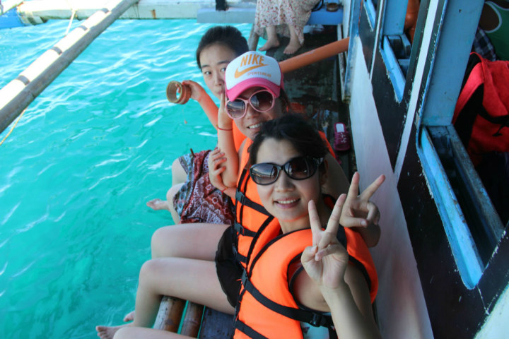 浮潜完大家被带到一个沙滩吃海鲜餐。。。都是我的同事们,有的带着自己妈妈有的带对象。