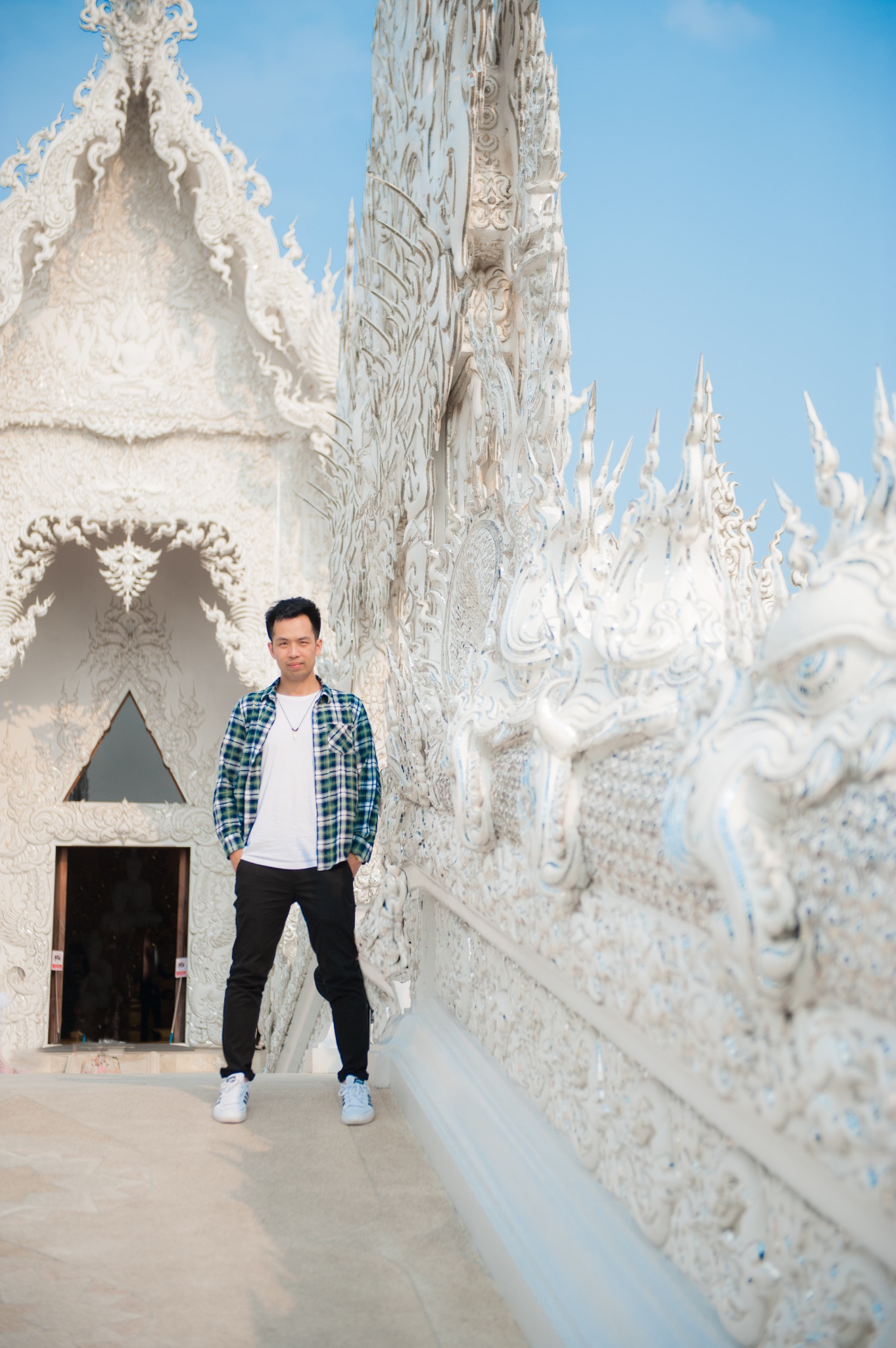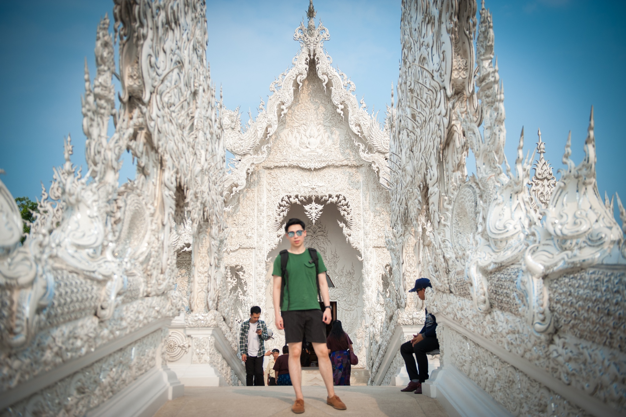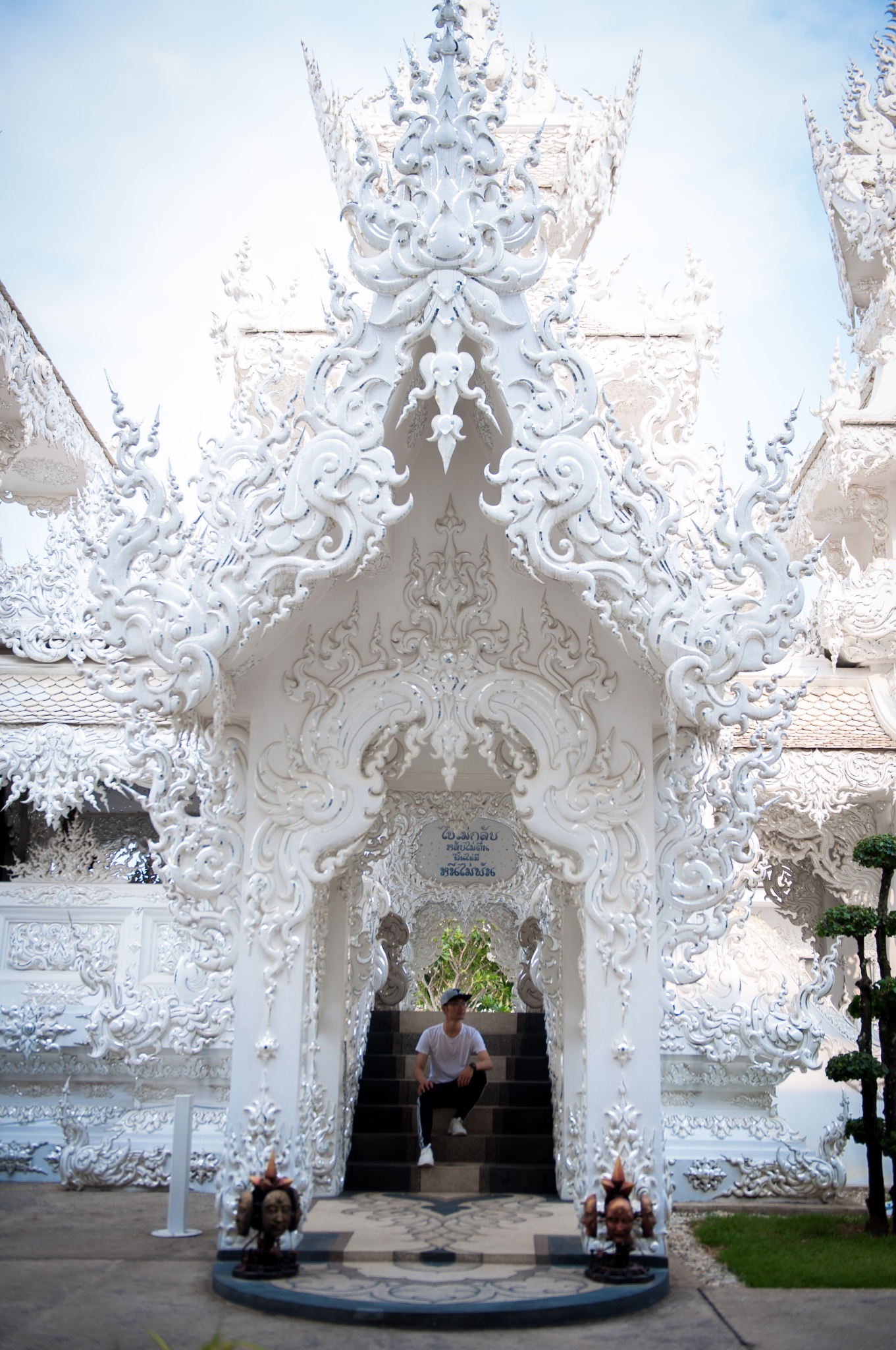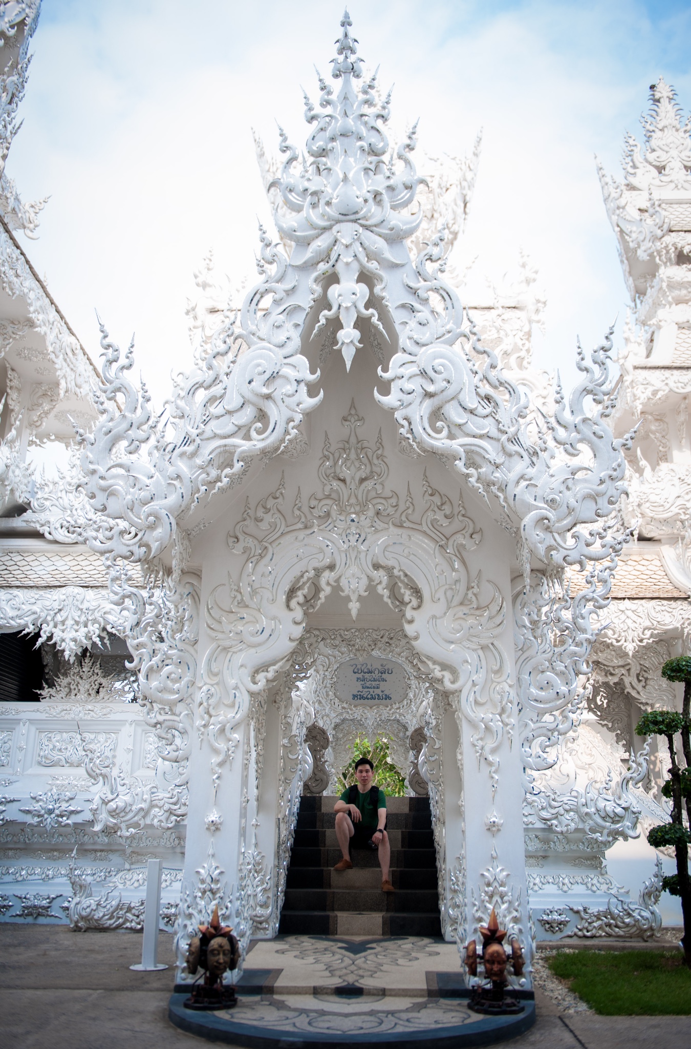 tips:白庙可以算是清莱的地标了,所以每天游客非常多,要避免上百人一起扎推,要选择好时间,有95%以上的旅行团是从清迈出发,而且是一天的白庙黑屋蓝庙的一日游。所以从清迈9点出发4个小时到达时间是中午了,这个时候太阳从头顶直射,加上白庙的颜色,就基本只会拍到要不看不清人,要不看不清庙的照片了。所以要避开人潮和选择好的时间,就只有从清莱一早出发了。