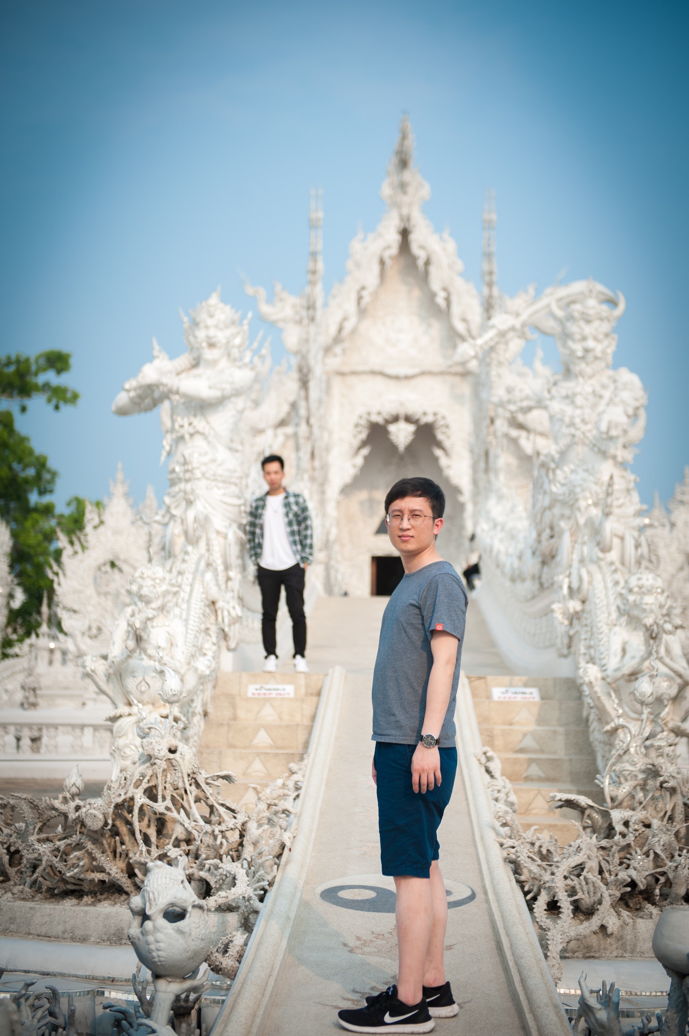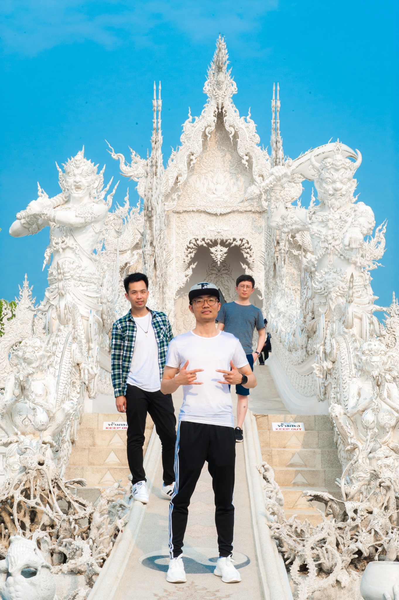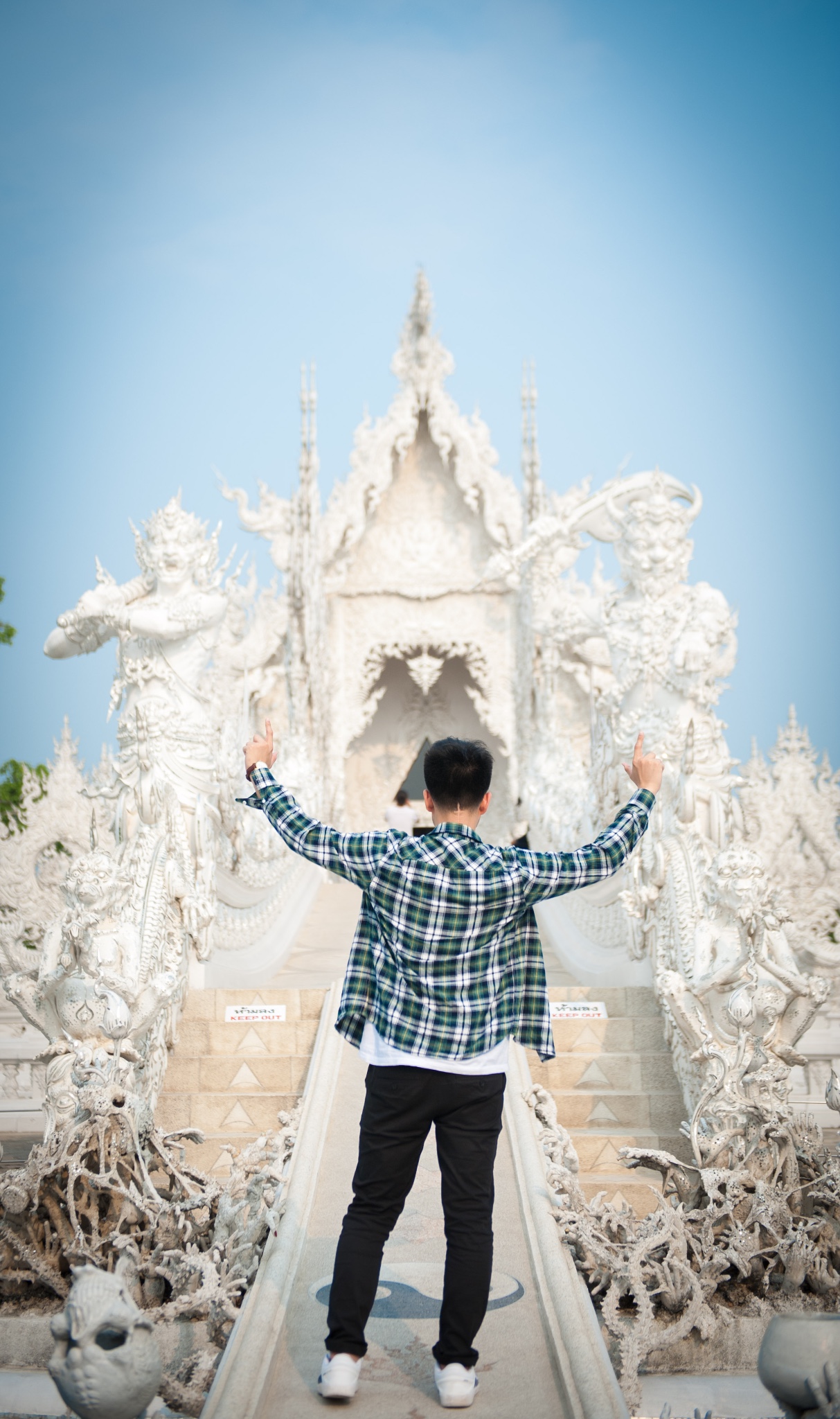tips:白庙可以算是清莱的地标了,所以每天游客非常多,要避免上百人一起扎推,要选择好时间,有95%以上的旅行团是从清迈出发,而且是一天的白庙黑屋蓝庙的一日游。所以从清迈9点出发4个小时到达时间是中午了,这个时候太阳从头顶直射,加上白庙的颜色,就基本只会拍到要不看不清人,要不看不清庙的照片了。所以要避开人潮和选择好的时间,就只有从清莱一早出发了。