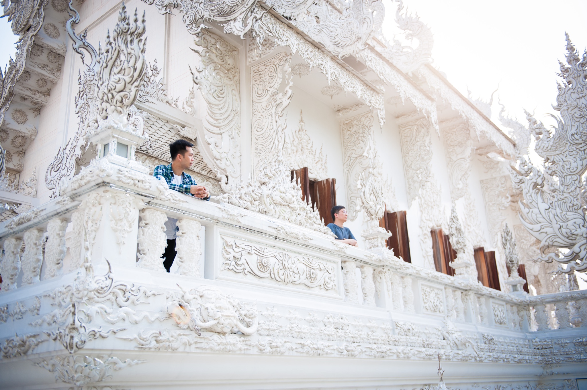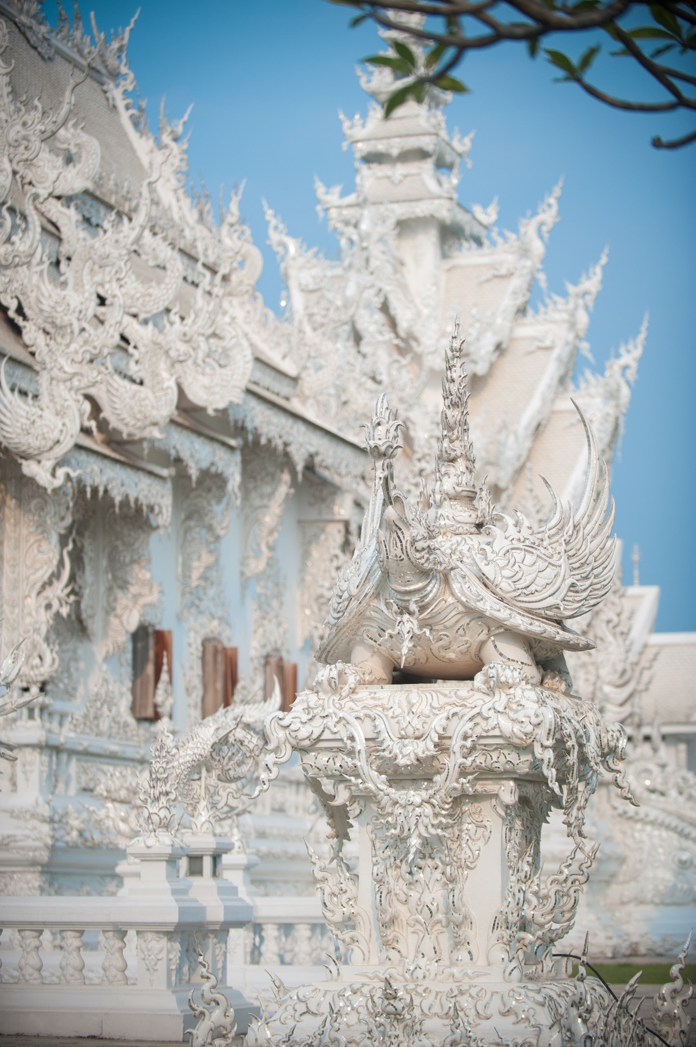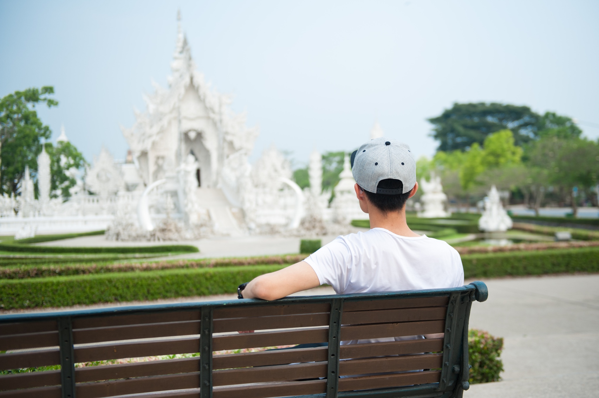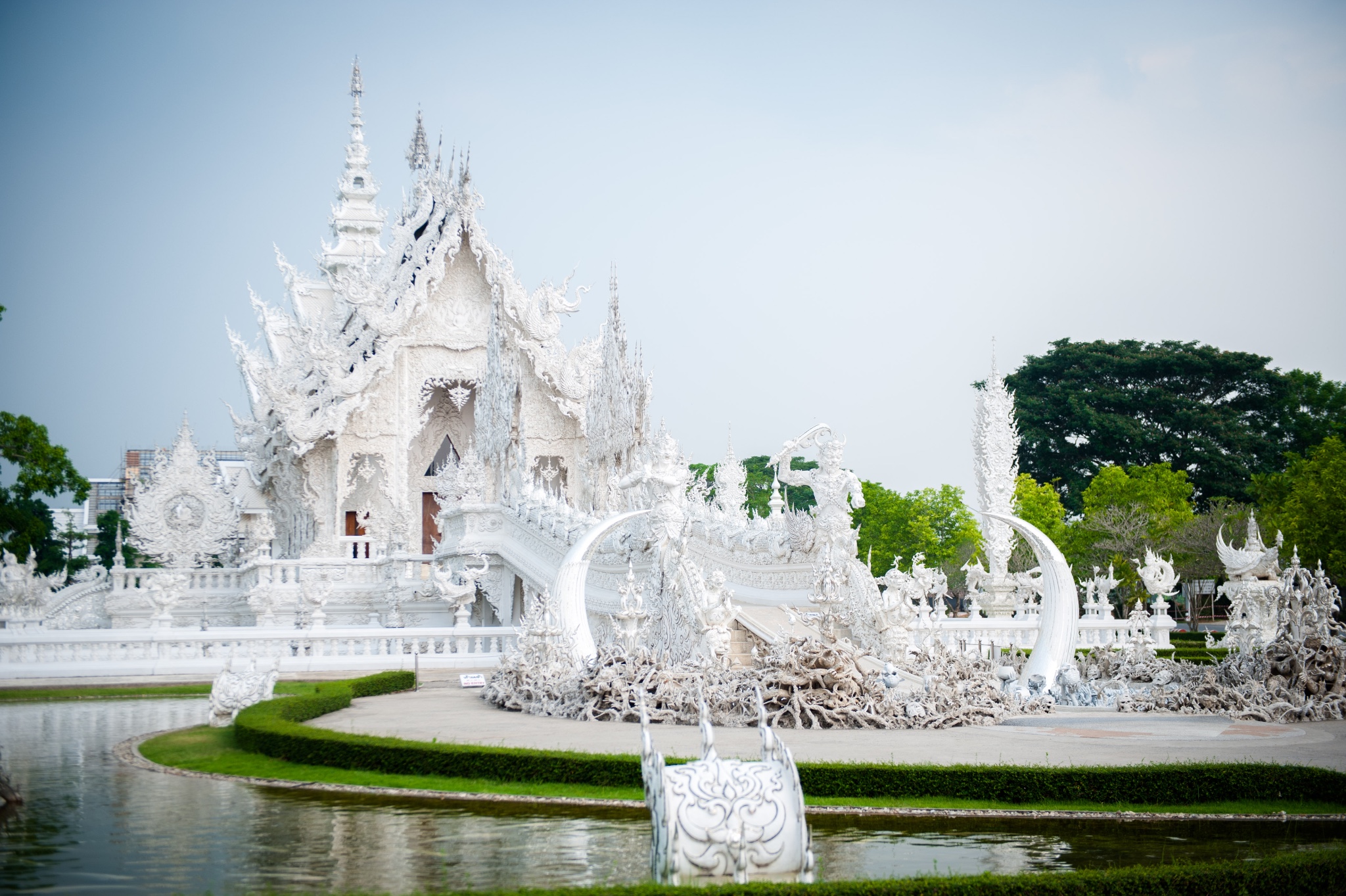 tips:白庙可以算是清莱的地标了,所以每天游客非常多,要避免上百人一起扎推,要选择好时间,有95%以上的旅行团是从清迈出发,而且是一天的白庙黑屋蓝庙的一日游。所以从清迈9点出发4个小时到达时间是中午了,这个时候太阳从头顶直射,加上白庙的颜色,就基本只会拍到要不看不清人,要不看不清庙的照片了。所以要避开人潮和选择好的时间,就只有从清莱一早出发了。
