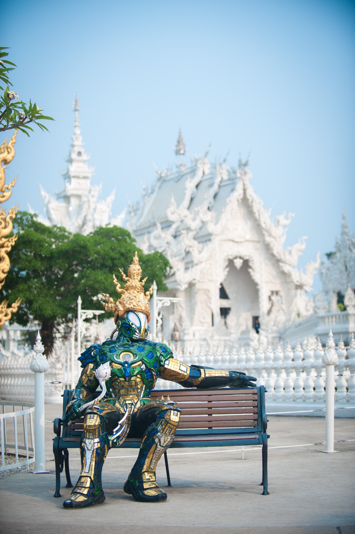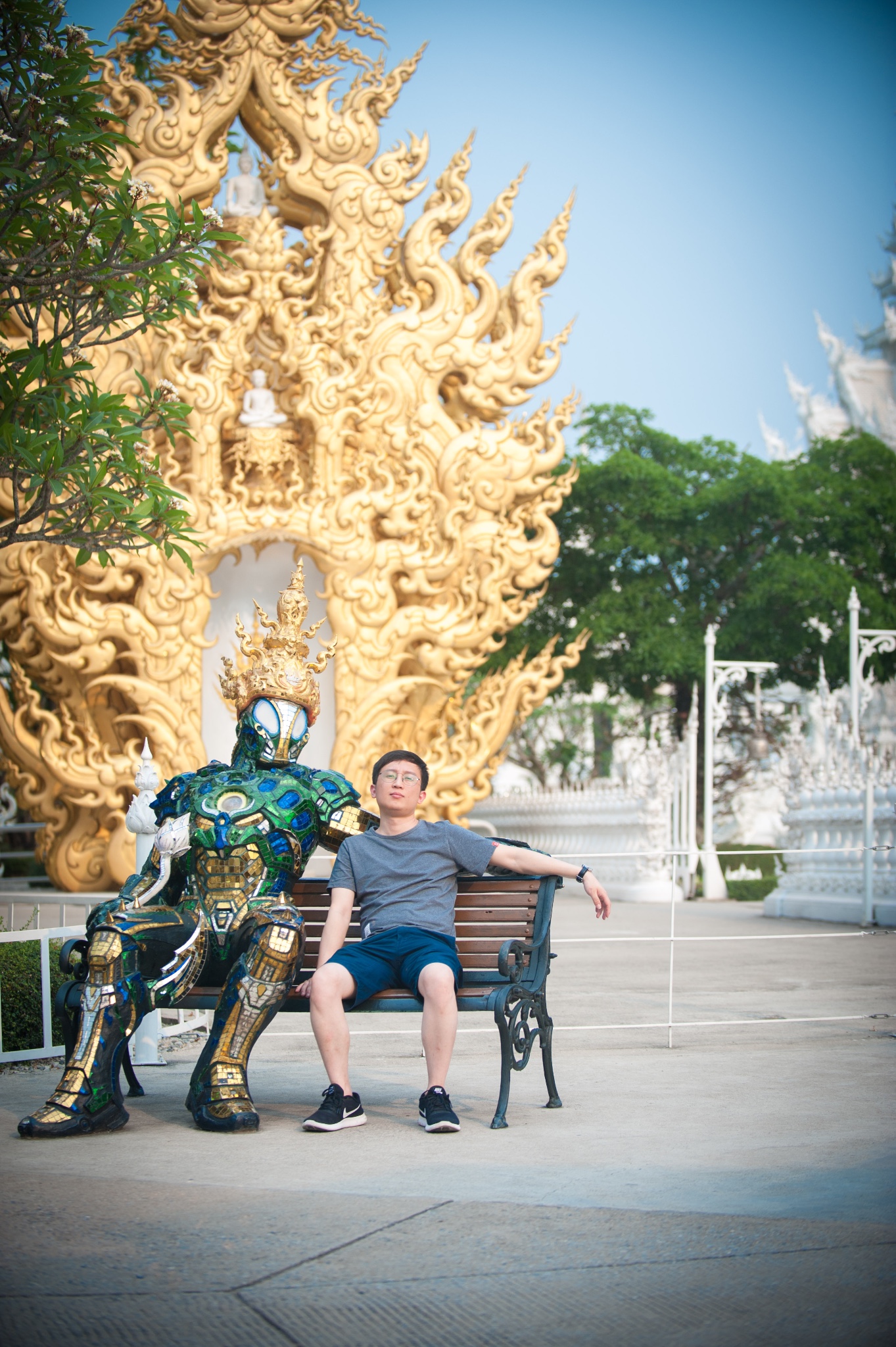 这个机器人是我在庙里看到最格格不入,跟庄严的白庙最不搭的一个地方了,可能是后期加上去给游客拍照用途,例如这样⤵️
