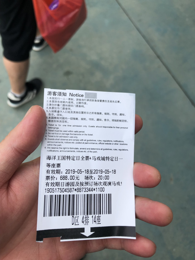 关于购票:长隆的海洋王国和大马戏是需要分开购票的,晚上的烟花秀是免费观看的。在很多App上看过票价,最后打了官方的电话咨询,对比之下还是觉得在官网或者手机下载长隆旅游App订票既便宜又放心。提前一周定票我没记错好像是有9.7折的,最好买套票(海洋王国+大马戏)在网上购票,乐园取票。至于大马戏购票和选座排队的事项我在后面再说。