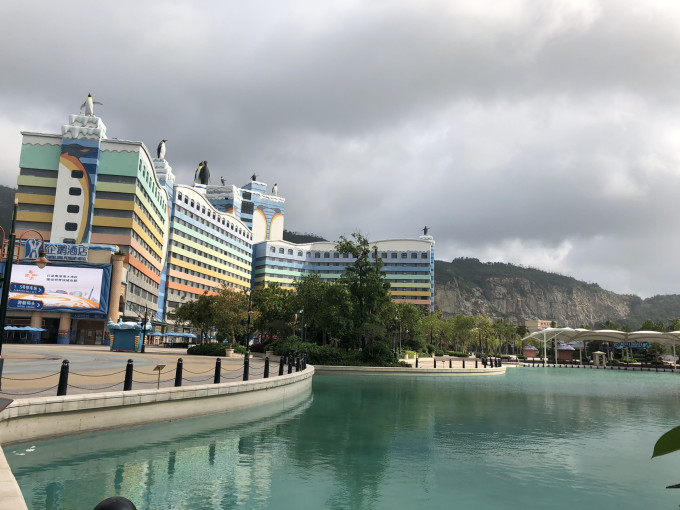 珠海长隆位于横琴湾,属于香洲区(也叫横琴新区是新的国家级开放新区)从拱北口岸坐车一路向南,沿途风景不错,可以看到一海之隔的澳门。
