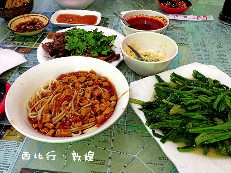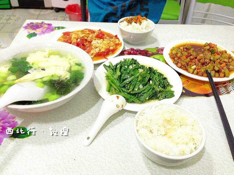 到了西北 十几天都吃过几顿米饭,太想吃了!发现敦煌 满大街都是四川 饭馆啊,找了一间点了三菜一汤,两个人吃完了哈。才47元。最喜欢和肥仔吃饭了,无论去哪都可以吃到很多东西哈。