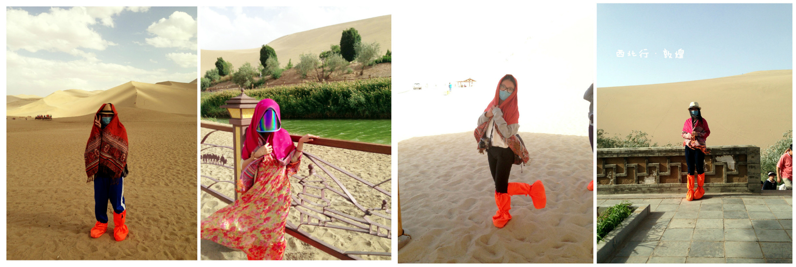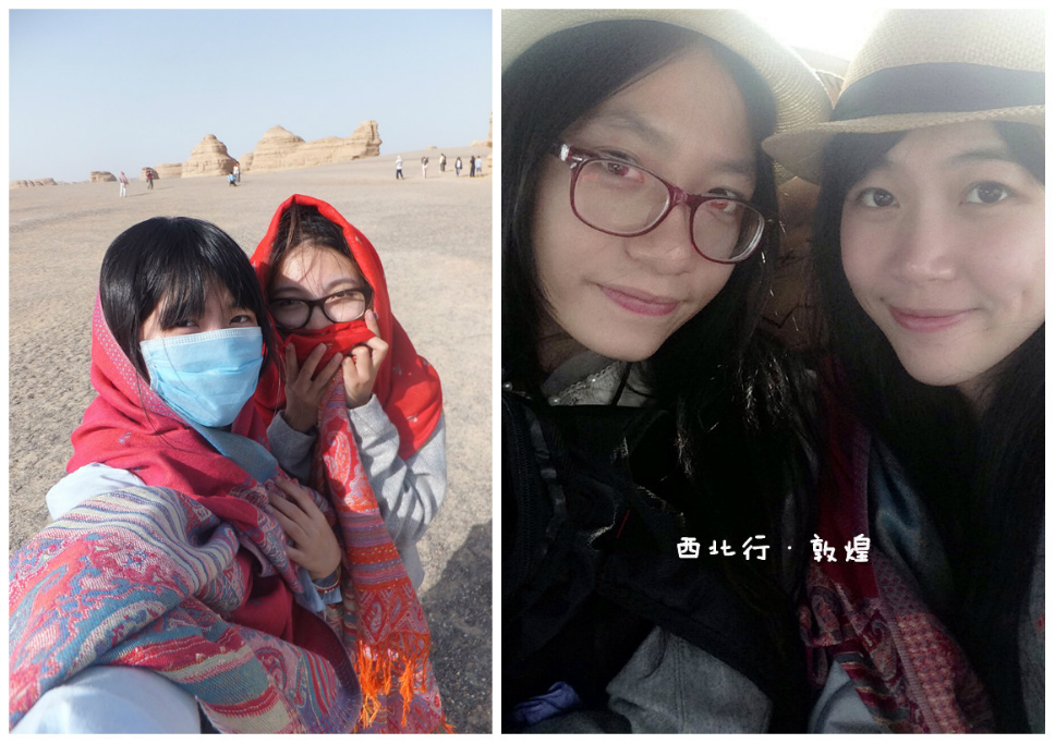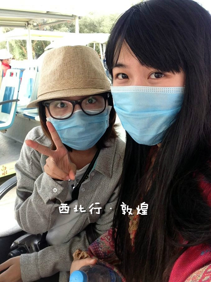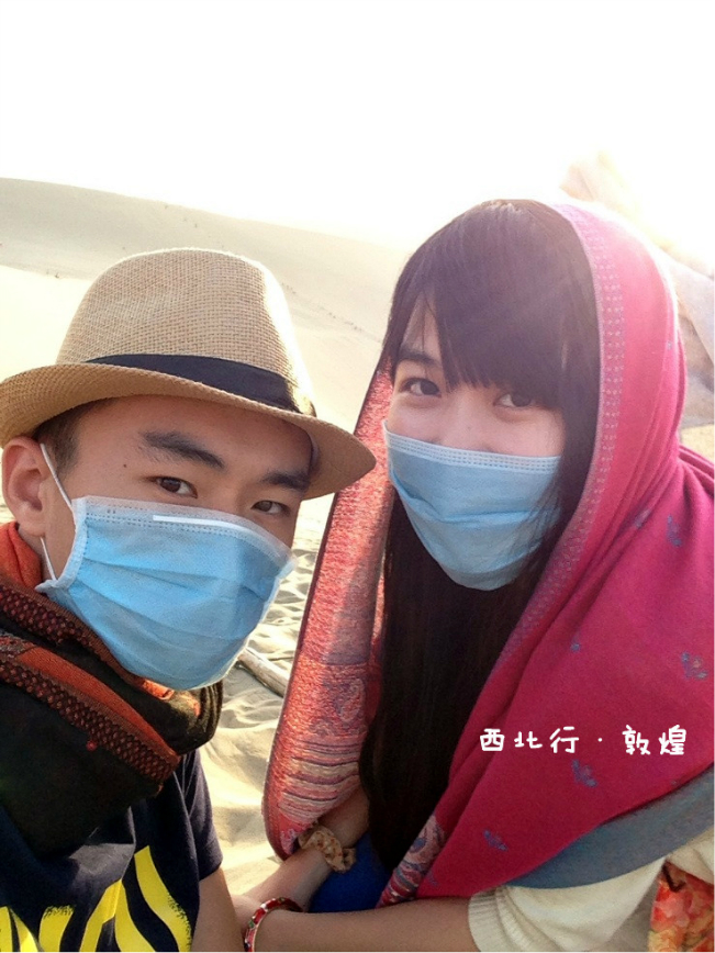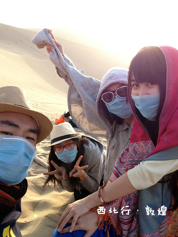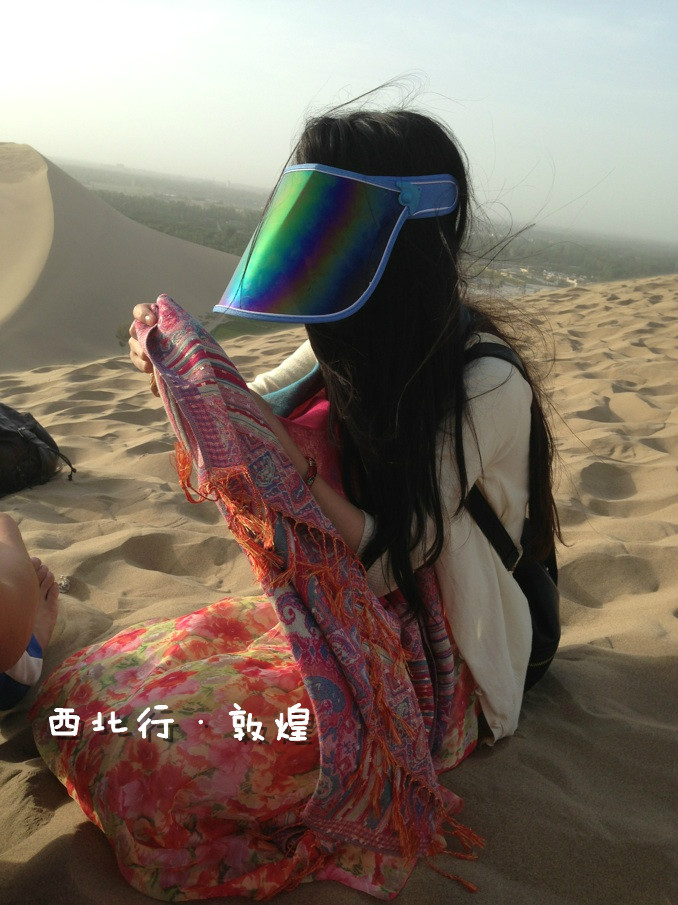 要给我的面罩一个特写,虽然我的同学说像焊工帽。。但真的很好用,防晒防风防沙,敦煌 没得卖是我学校带过去了,,