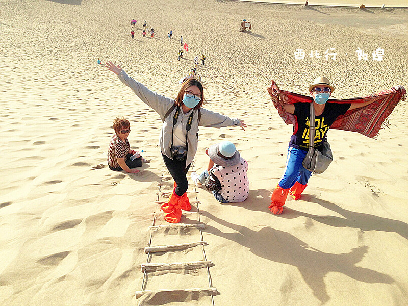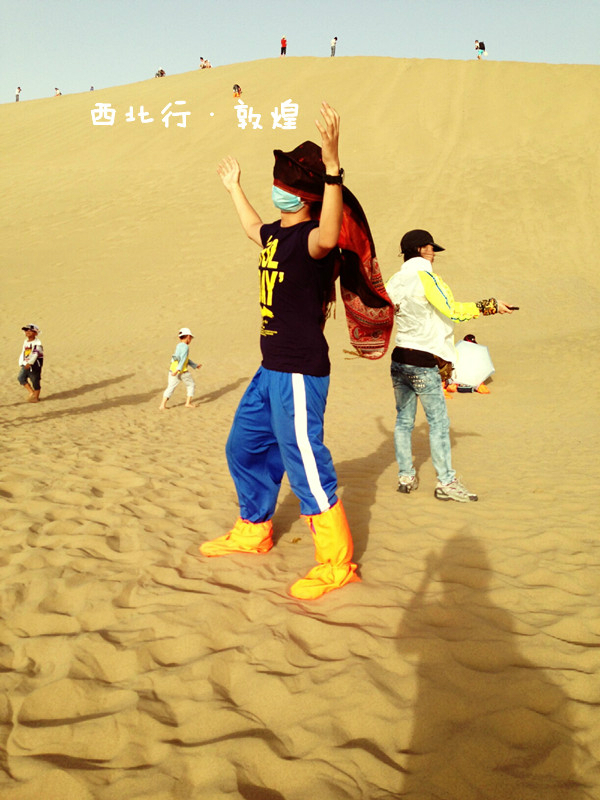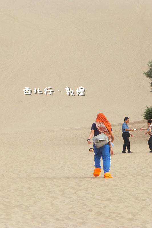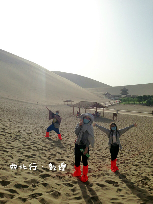 背后密密麻麻的就是爬沙山的人,下午4点多去,虽然很热很晒,但不建议租鞋套,走路挺不方便的,后我们都把鞋套脱了,也不会很热。