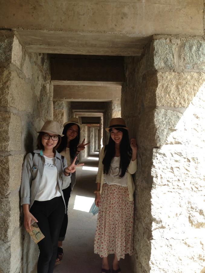 在门口等司机大哥时,我和心清跑到一个土堆上拍照了,诶好热!