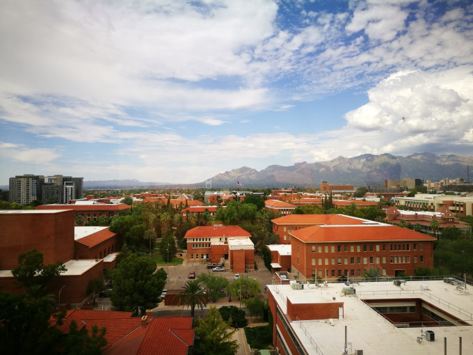 午饭后,就来参观参观我的大学 —— 亚利桑那大学(University of Arizona)。这是一所有着“公立常春藤”美称的学校,在2019年US News上,全球排名52,全美公立排名46。全校大约有45000人左右,包括本科生、研究生还有博士生。1885年建校,距今已有134年的历史了。