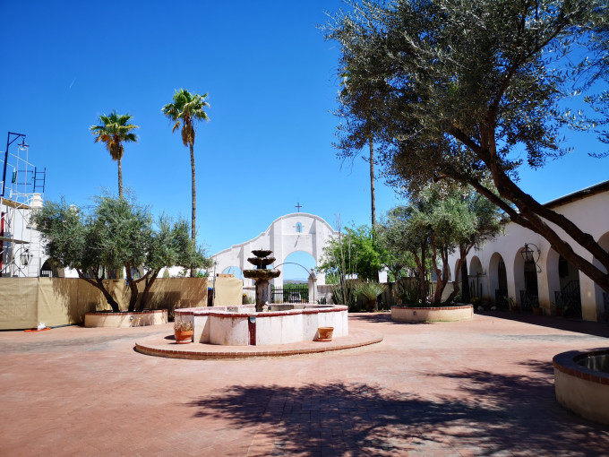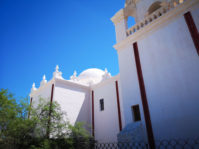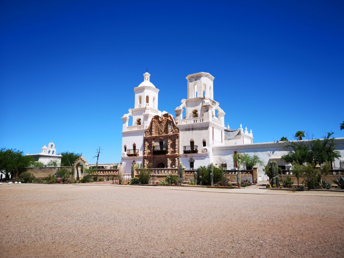 好了,学校参观完毕后,就让我们来看看当时西班牙人在美洲大陆殖民时期所建的最优秀的教堂 —— 圣泽维尔大教堂(Mission San Xavier del Bac),大约是在1783 - 1793年建成的。她的历史过于繁琐,而且也很枯燥,我就不再一一赘述了,感兴趣的朋友可以自己上网查一查。