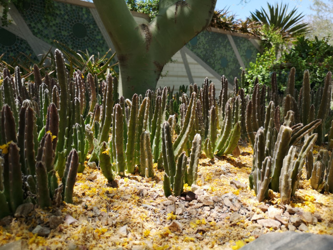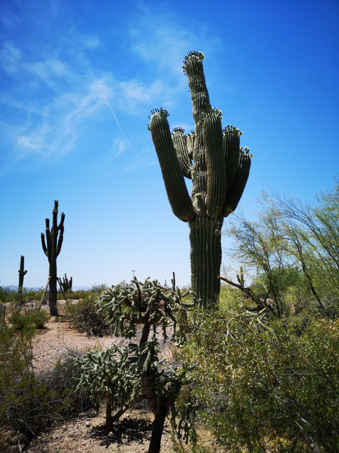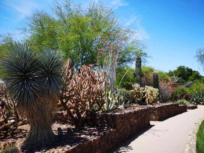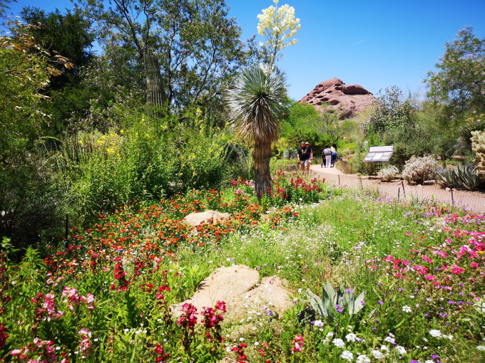 到达凤凰城,一定不要错过它的植物园,这里有在别的地方很难见到的巨型仙人掌、沙漠植物和其他的神奇植物。上面我也提到了植物园的票价大约在$25左右,但是我们今天来的时间正好是每个月的第二个星期二,这一天是公园的community day(社区日),就是可以免费进入。所以我们很幸运的免了票,嘿嘿