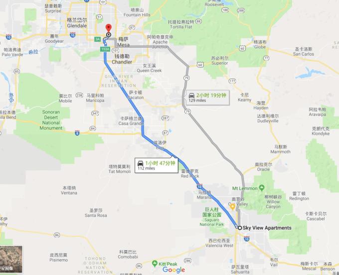 从图森出发,前往菲尼克斯全程112英里,共1小时50分钟左右。