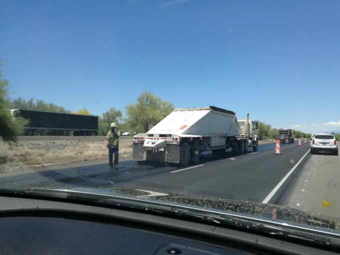 在前往边境的途中偶遇美国人民铺路,感觉比较神奇