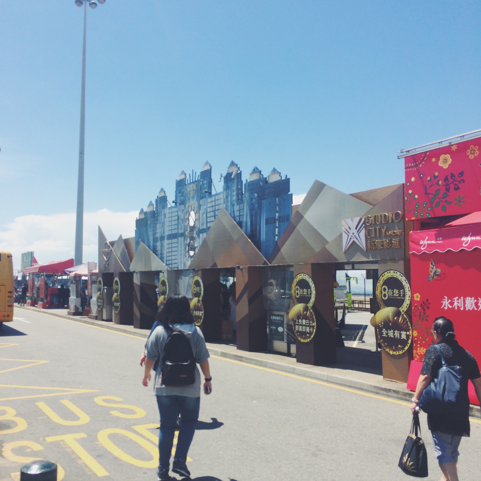 好啦!说完我们就到了,下船,过关,出门就看见各大酒店的站台,坐上新濠影汇的发财车就去酒店咯~