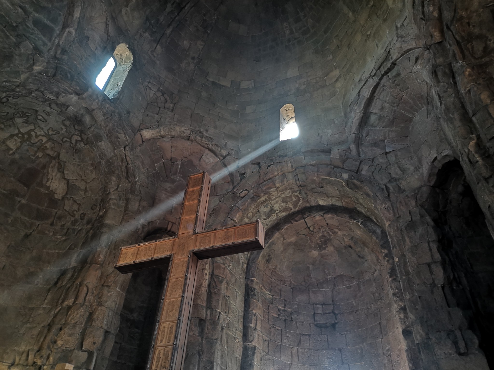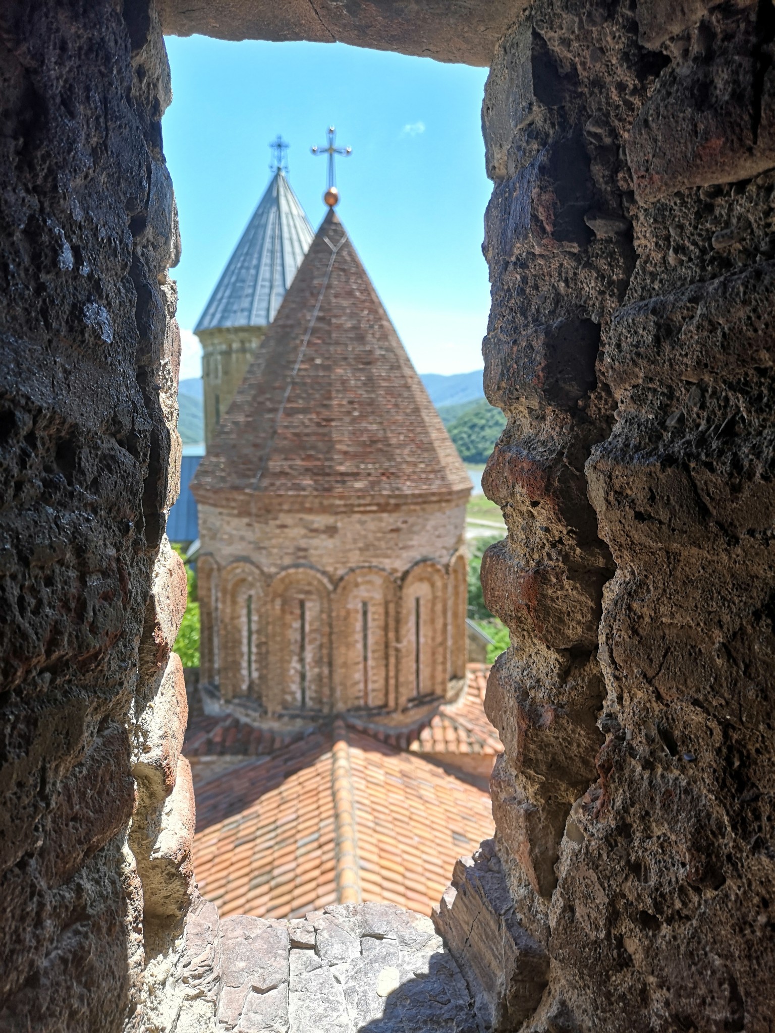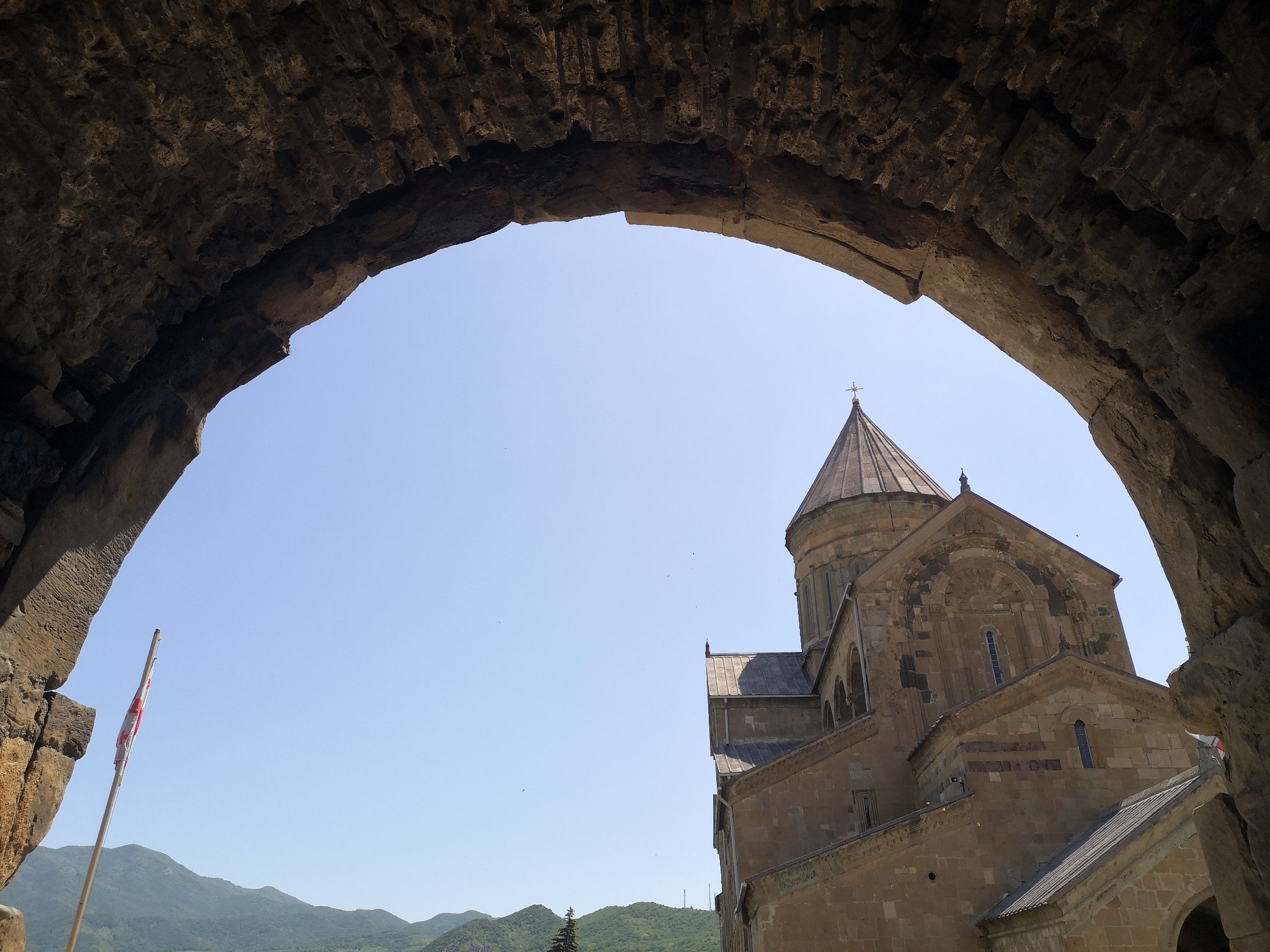 先是开车上山,去到Jvari Church十字修道院,那里可以俯视看到整个小镇,非常漂亮。(做小巴是不能到小镇外山上的十字修道院的。)姆茨赫塔最重要的地点是生命之柱大教堂,被誉为基督长袍的埋藏地。
