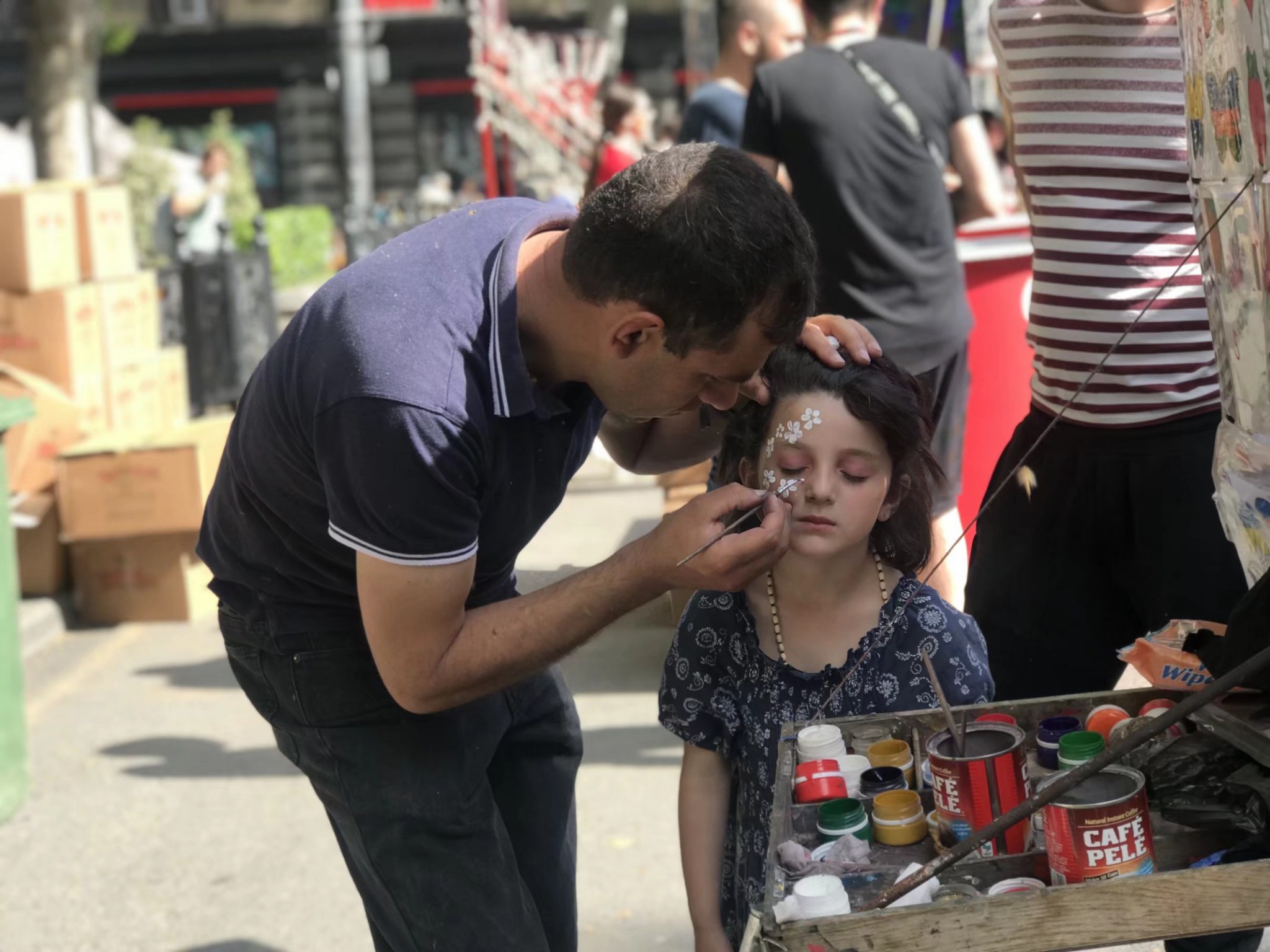 中午回到第比利斯吃午饭,然后去逛旱桥市场。在自由广场地铁站下,周末刚好是独立日活动,自由广场边的大道封路了,有很多活动。很多小朋友脸上化着各式的妆,还有小型舞台,随便逛逛也是很好玩。可惜后面准备逛旱桥市场的时候,天气开始变差,要下雷阵雨的感觉。所以很多摊主准备收摊了,没有好好逛逛这个著名的二手市场。也是有趣,在路边一家甜品店躲雨,遇到了一个在湛江工作过的美国外教,一帮人开始了异国的英语角。晚饭是在老美的介绍下去了家乐福超市对面的餐厅吃的(拐角的黄色建筑一楼),味道不错关键是非常便宜,人均20人民币不到!家乐福超市离地铁站不远,大家可以来这边购物,水果、面包、饮料、方便面、零食都有,还可以买红酒。