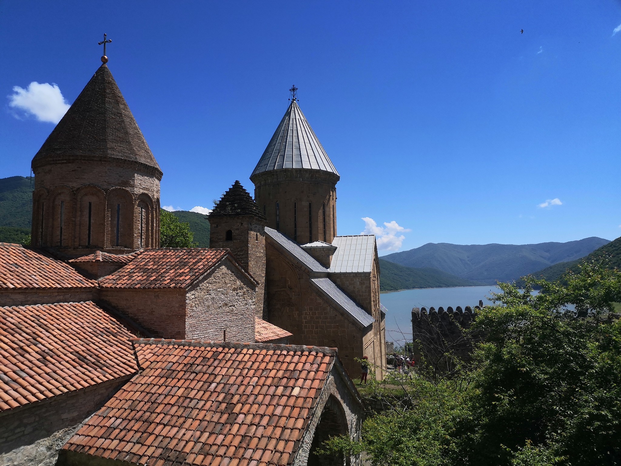 去卡兹别克坐小巴也是在Didube,菜场里面的停车场,人均10拉里,中间不停车。我们和昨天包车司机约好,第二天早上10点出发,途经Ananuri城堡、格鲁吉亚俄罗斯友谊观景台,花费4小时下午到达卡兹别克上山到教堂一览。Ananuri城堡曾经上过孤独星球杂志的封面,是一个私人城堡军事要塞,在水库边上非常漂亮。格鲁吉亚俄罗斯友谊观景台在古多里,冬天可以滑雪,夏天可以玩滑翔伞。到达卡兹别克山下,可以选择包车一人10拉里来回,也可以自己爬山,来回14公里左右。