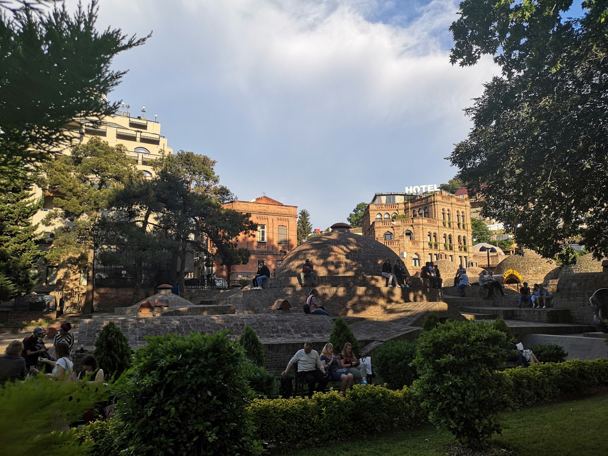 早上在民宿吃过丰盛的早餐后,启程回第比利斯,中午在城外的山上玩滑翔伞。如果想和我们一样玩轻松一点的,可以搜索flycaucasus官网可以预订,价格可能经常变动。下午休息过后就前往老城的硫磺浴池泡澡,像烧砖窑的地方,据说正是这里的硫磺温泉吸引了国王Vakhtang Gorgasali,才将首都从姆茨赫塔迁过来。我们去了royal bath, 只有最贵的房间有空120拉里一间一小时,一群好友包一间还是很有趣的。里面有淋浴、热温泉、冷水池、汗蒸房,自己带洗漱用品和毛巾。泡完温泉本来可以回去好好睡一觉,可是前一天临时决定不去库塔伊西在巴统定了酒店,去泡澡前买火车票告之第二天上午的没有了,只能坐凌晨的火车去。所以回去收拾了行李就小睡了一下,一行人就出发去海滨城市巴统了。