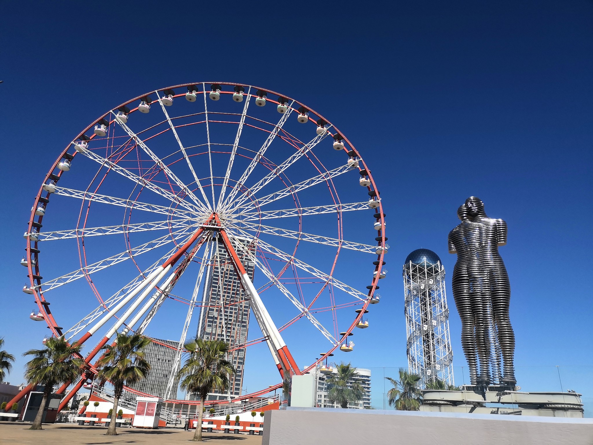 巴统是一个靠近黑海的海滨城市,比第比利斯更年轻更欧式风格。到达火车站,拒绝了门口的揽客司机,逛了一会鹅卵石海岸,一行人跟着一个大叔就上了白色小巴,一人0.5拉里。非常大胆,语言无法沟通,就给司机看了我们的酒店,看谷歌地图差不多地方我们就下了。车子里的当地人很热情地和司机商量应该让我们在哪里下车,虽然我们一句也听不懂,哈哈。巴统最著名的就属黑海海岸步行道,这里有Ali an Nino 雕塑还可以看到近海的海豚,随便逛悠闲地度过白天。晚上在酒店顶层喝咖啡吃甜品看烟花,还有服务生小哥用简单英语聊天,还是很惬意的。不急的话,还可以去网红麦当劳坐坐,建筑有特色。可以在巴统寄明信片,注意邮局下班时间。